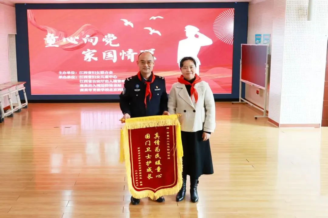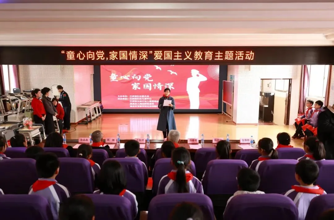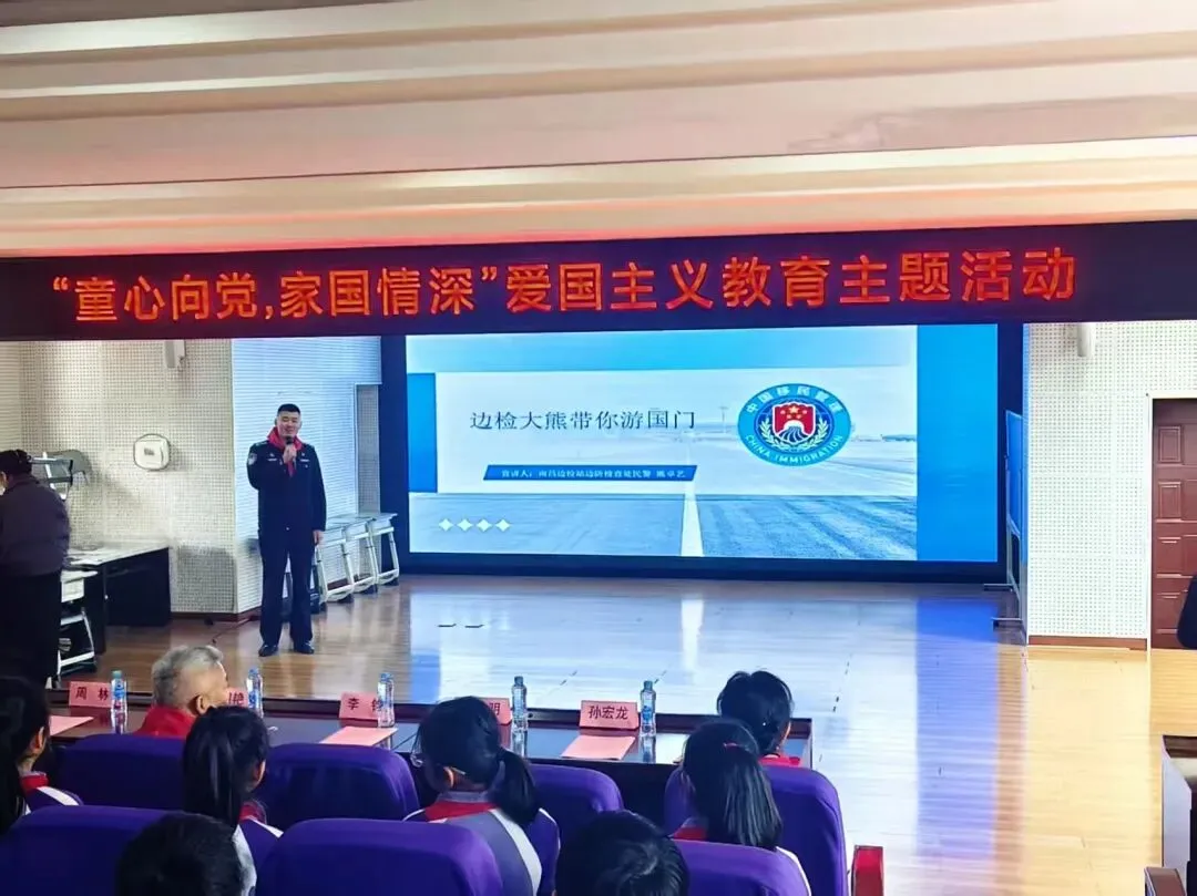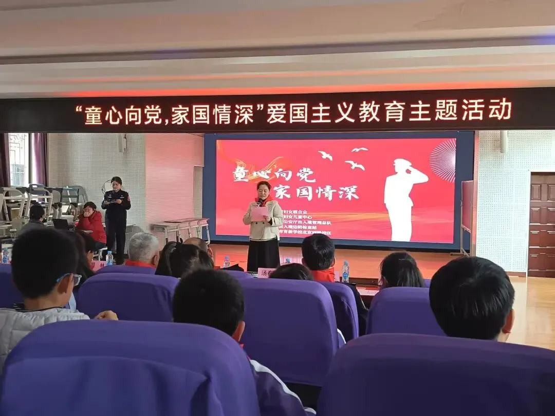 3月5日下午,由江西省妇女联合会主办,江西省妇女儿童中心、江西省公安厅出入境管理总队、南昌出入境边防检查站、南昌市育新学校教育集团北京西路校区共同承办的“童心向党,家国情深”爱国主义教育活动在学校报告厅顺利举行。育新学校教育集团北京西路校区近90名学生参与本次活动,在沉浸式体验中厚植家国情怀。出席此次活动的嘉宾有江西省妇女联合会家庭和儿童工作部二级调研员于国艳,江西省公安厅出入境管理总队政委李钧,江西省妇女儿童中心副主任涂晶晶,南昌出入境边防检查站党委委员、副站长孙宏龙,东湖区教体局党委委员、副局长周林,南昌市育新学校教育集团校长张雅勤,副校长李芸芳。