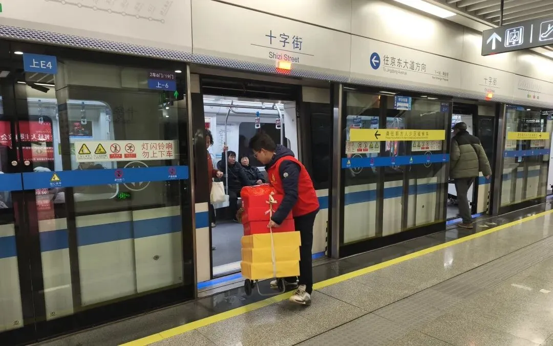 来自段机关各部门和一线工班的10名青年员工组成志愿服务队,在南昌地铁3号线十字街站共同开展志愿服务活动。