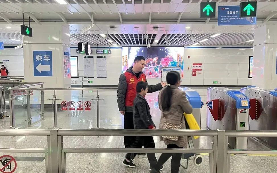 志愿者分组投入到多个服务岗位上,指导乘客购票、指引乘客选择乘车路线、帮助乘客通过进出站闸机,帮助残疾人、老年人、儿童安全乘坐电梯,并维持上下乘车秩序。
