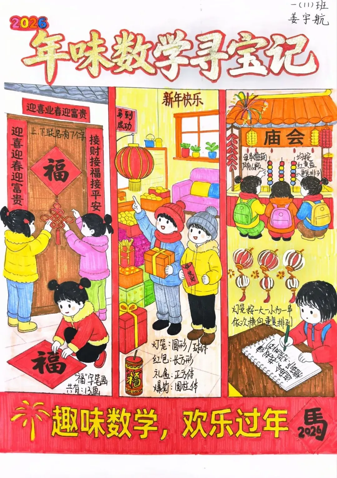 一份份用心完成的数学实践作业,展现着孩子们探索世界的独特视角,也凝聚着老师们的智慧与引导。相信在这次“年味数学”之旅中,孩子们不仅收获了知识,更收获了用数学眼光看世界的快乐!