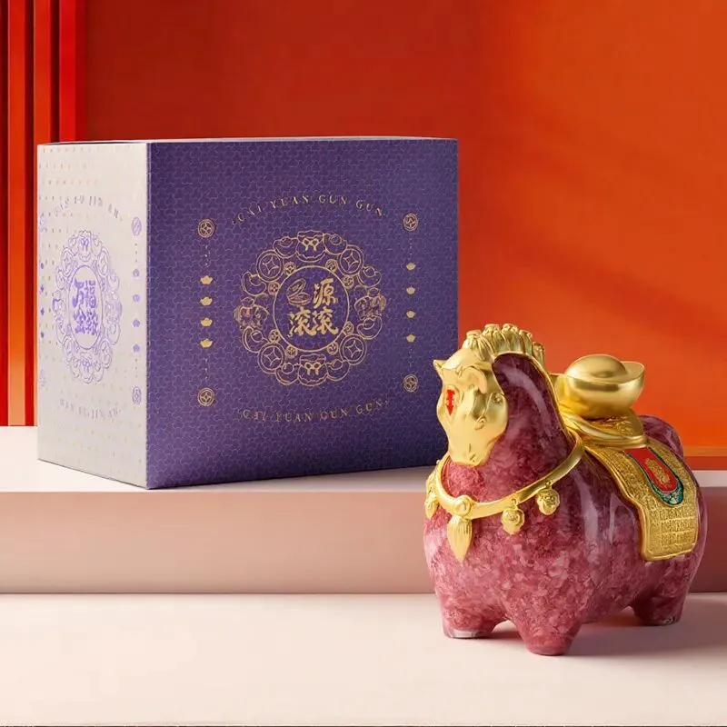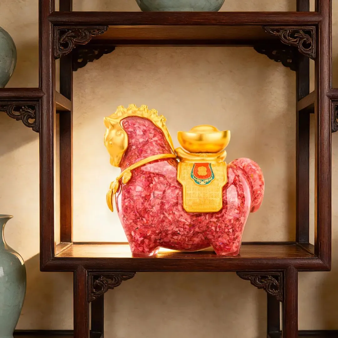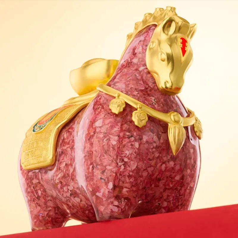 马身为高透树脂融合人民币百元钞碎屑,赤色流转,华而不炫,象征红运聚财、根基沉稳。
