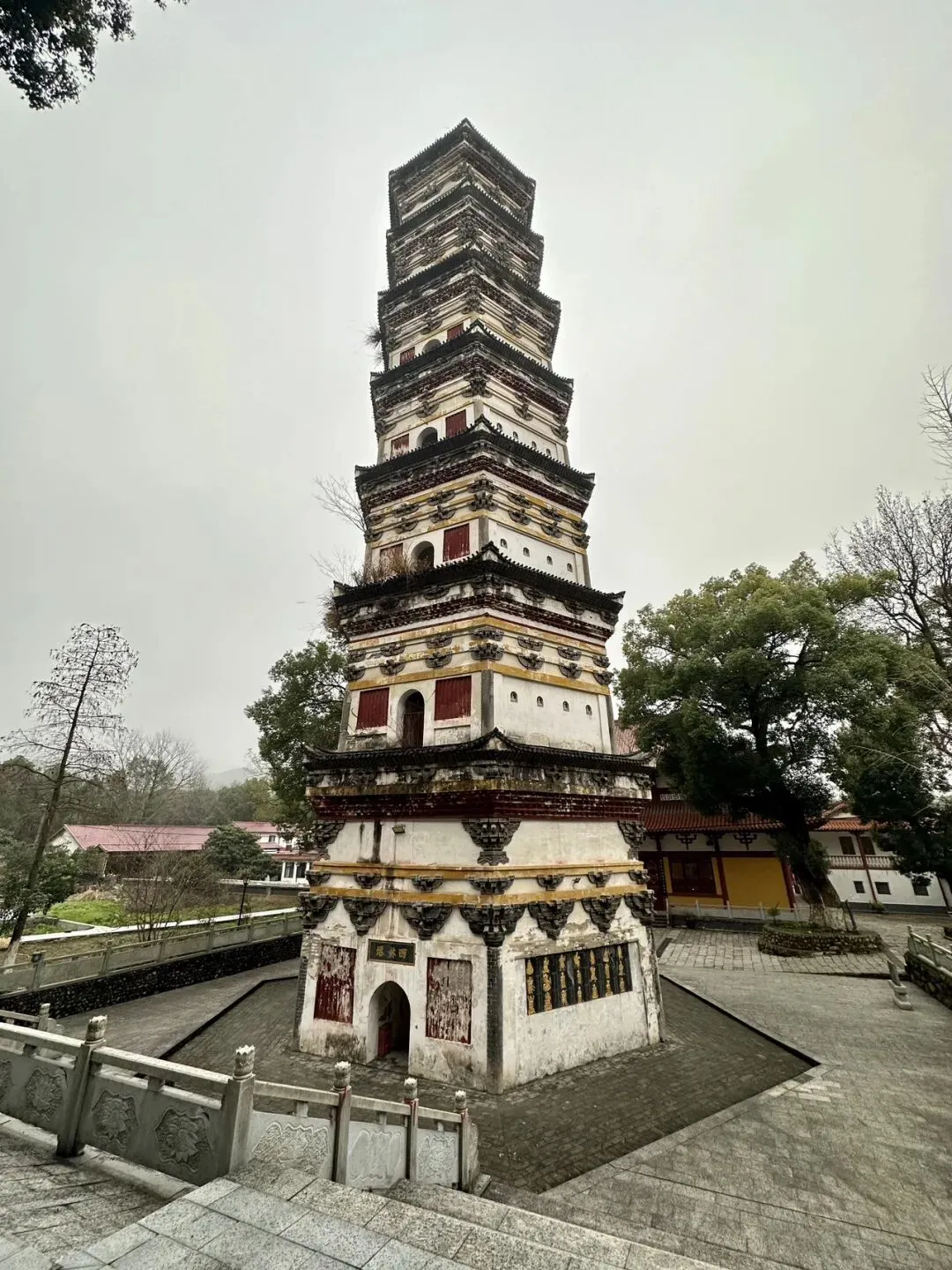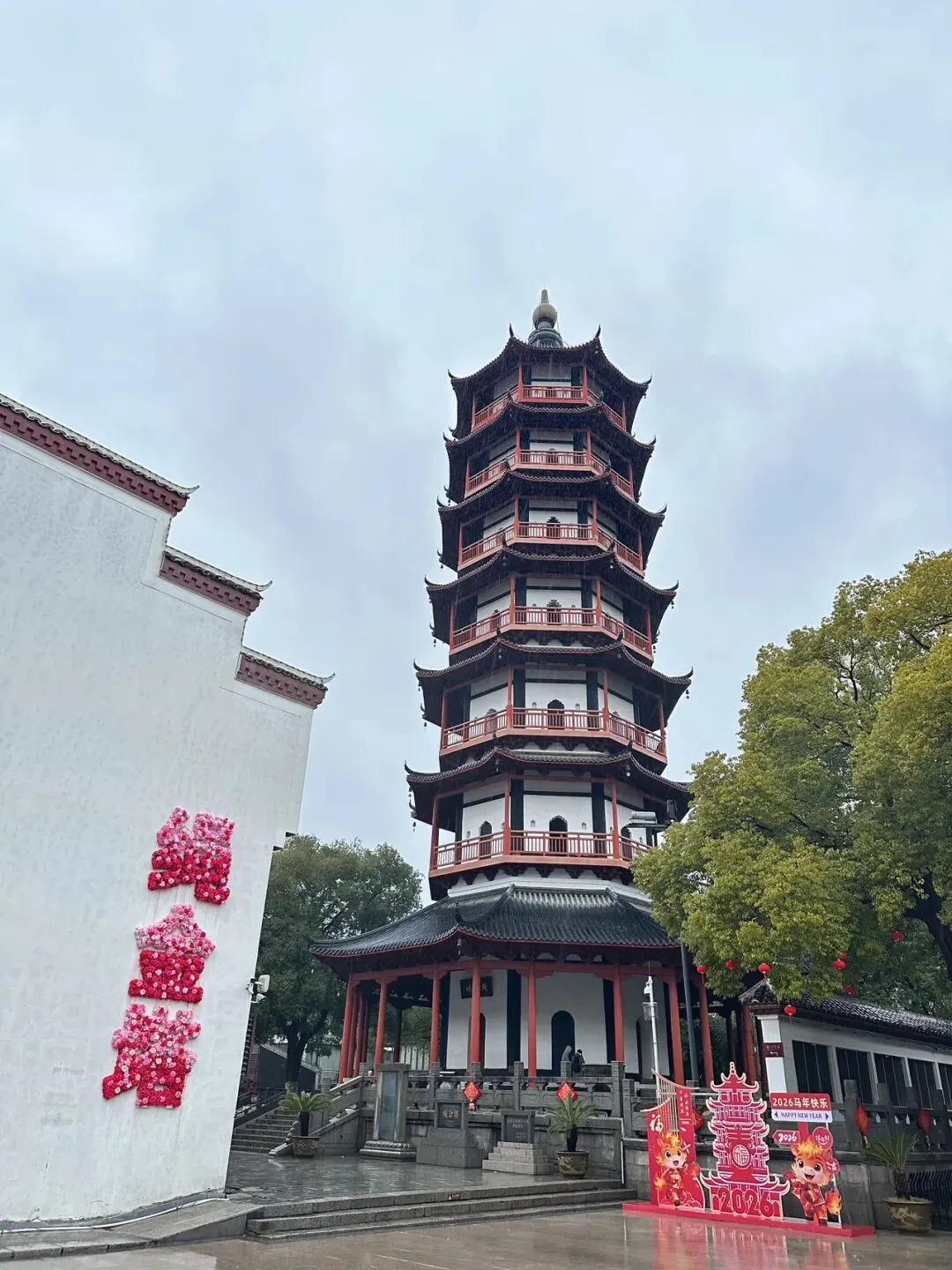 大半天的火车车程,下午到酒店后略作休整,冒雨前往绳金塔。始建于唐,最近重修于2000年,江南典型的砖木结构楼阁式塔。