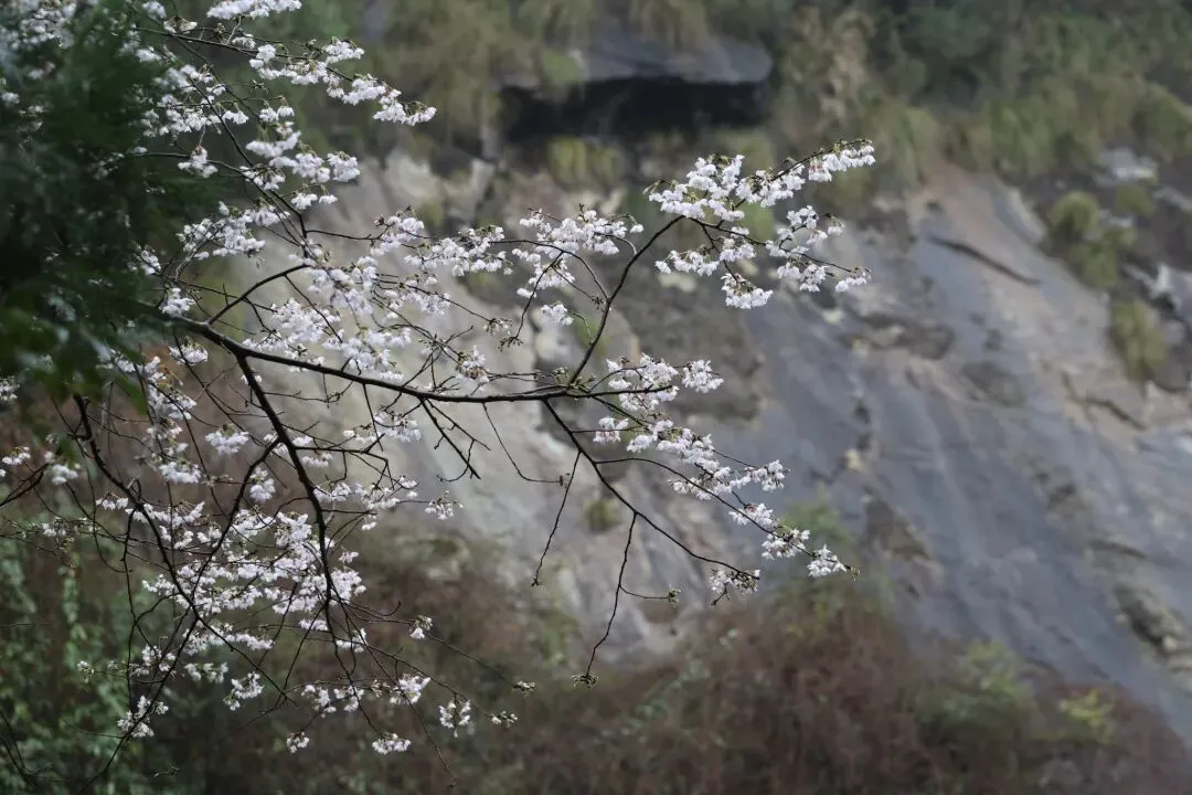 似雪如云,山樱独自开。