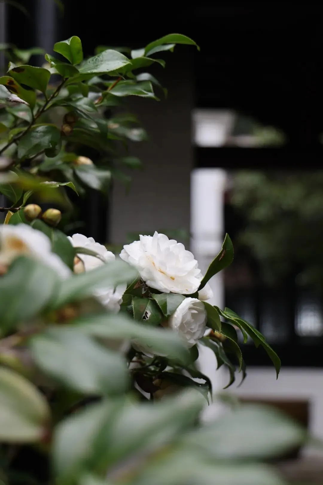 白茶花与丹桂亭。