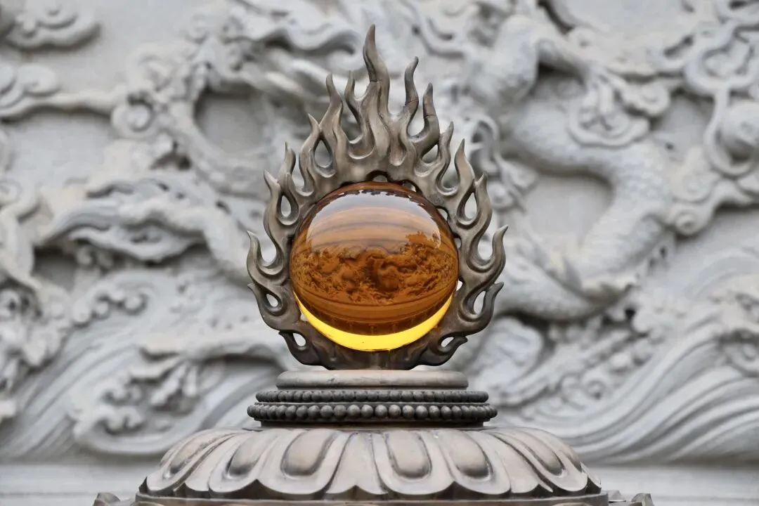 九龙壁前的摩尼宝珠,近观珠摄九龙。