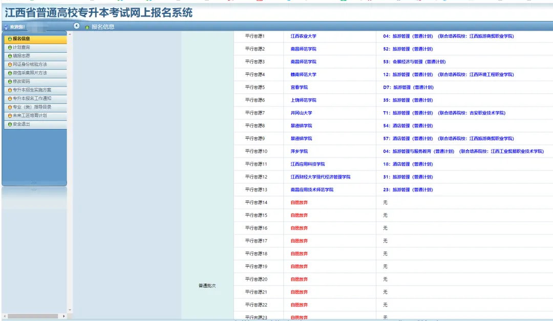 4.4“普通计划”批次志愿填报。所有通过资格审核的考生均可以填报此批次志愿。根据各校招生专业情况,最多可填报40个平行志愿。平行志愿均采用“院校+专业”模式,即1个院校的1个专业为1个志愿。