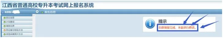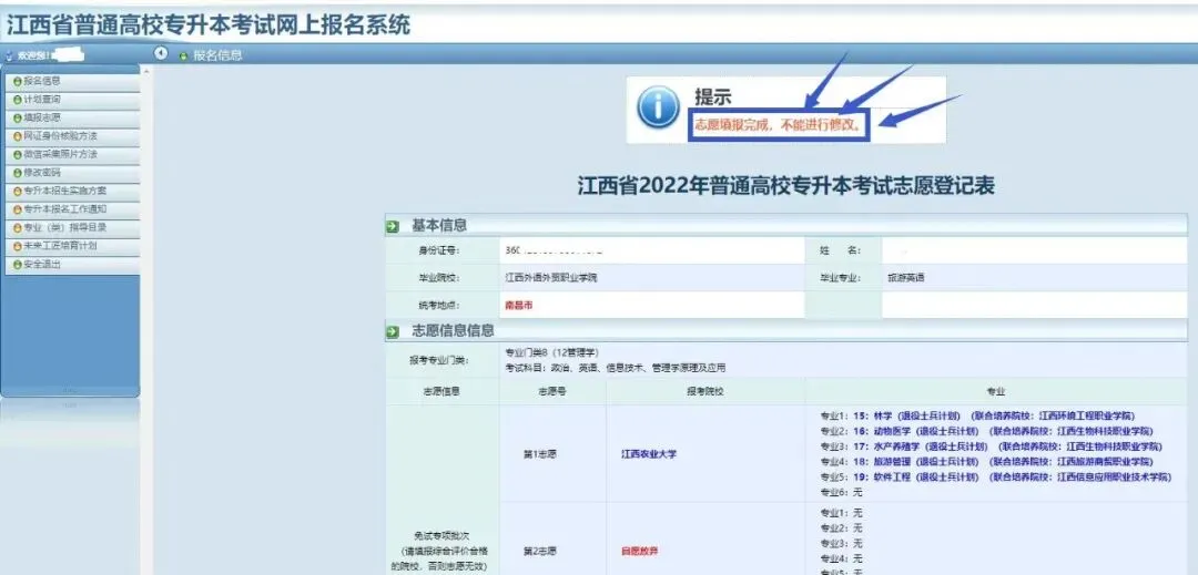 15.志愿修改完毕,页面提示“志愿填报完成,不能进行修改”。