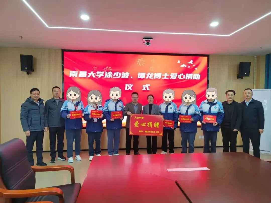 3月6日,南昌大学涂少波、谭龙博士爱心捐助仪式在大余中学举行。此次活动不仅是高校人才服务地方的生动实践,更是新时代知识分子情系基层、回馈社会的真情流露。仪式由大余中学校长李晓然主持,县人民政府副县长曾毅、南昌大学挂职干部涂少波博士、县委人才办主任邹路生、大余中学党总支书记张祥敏、县教体工委委员、县教体事业发展中心主任刘万荣等出席活动。