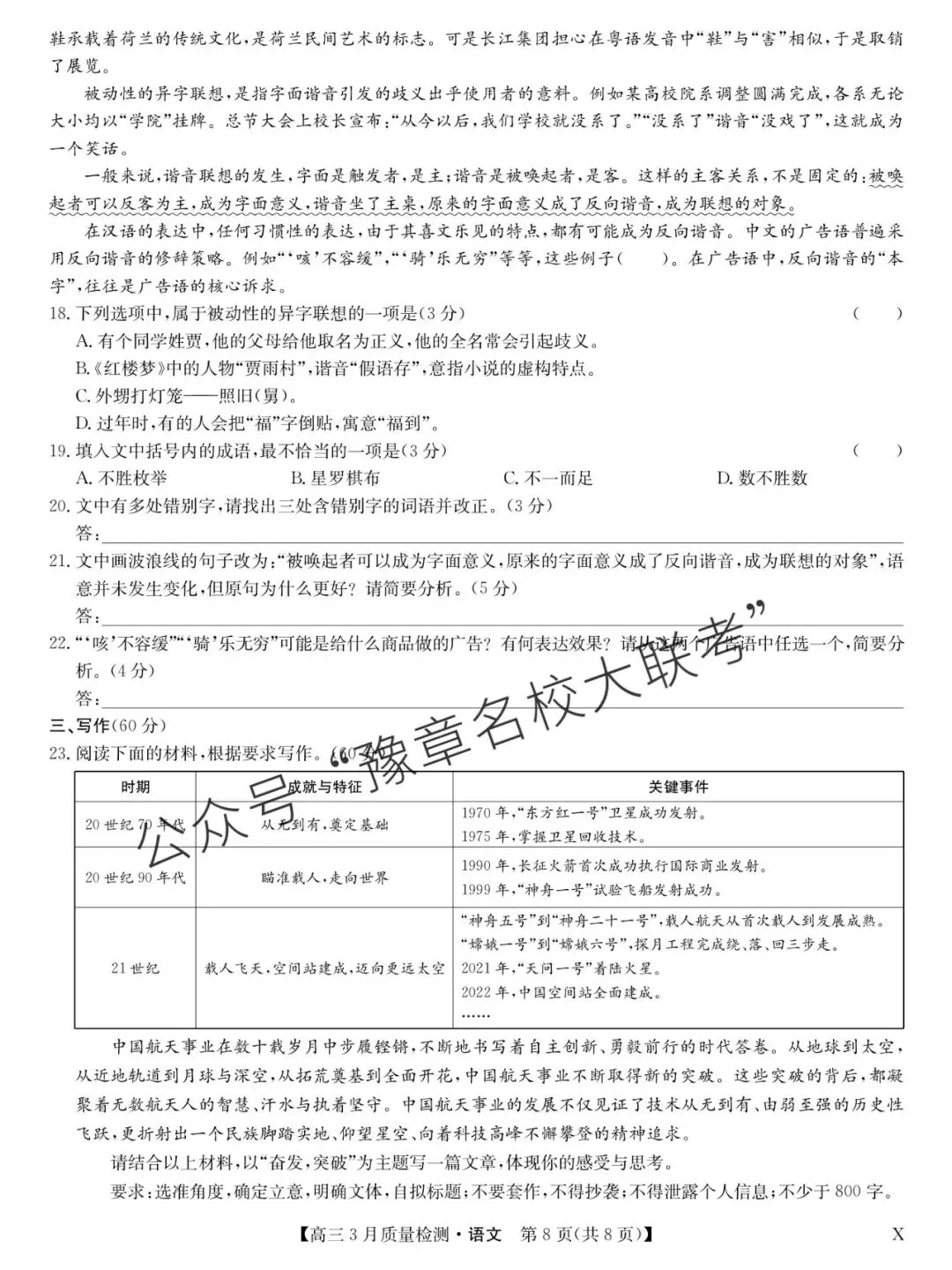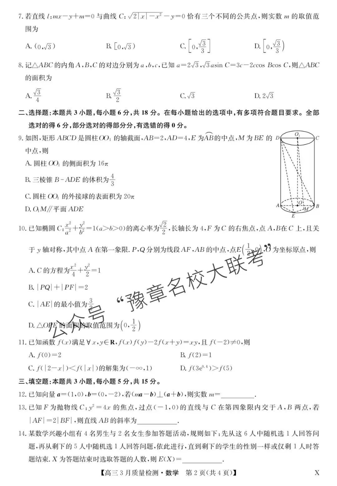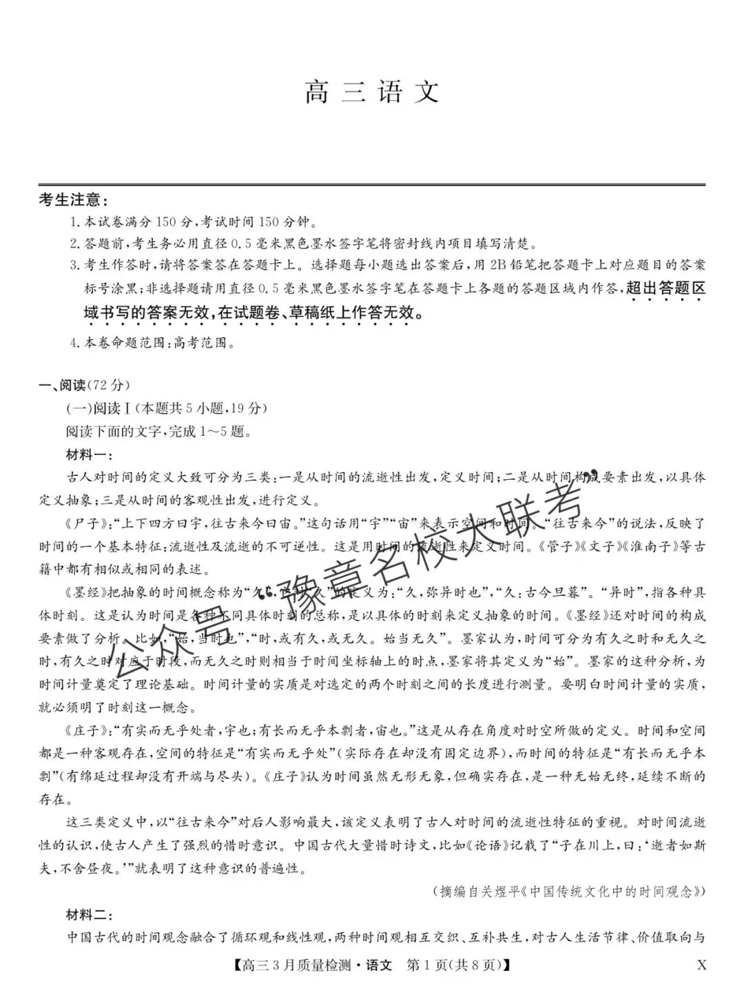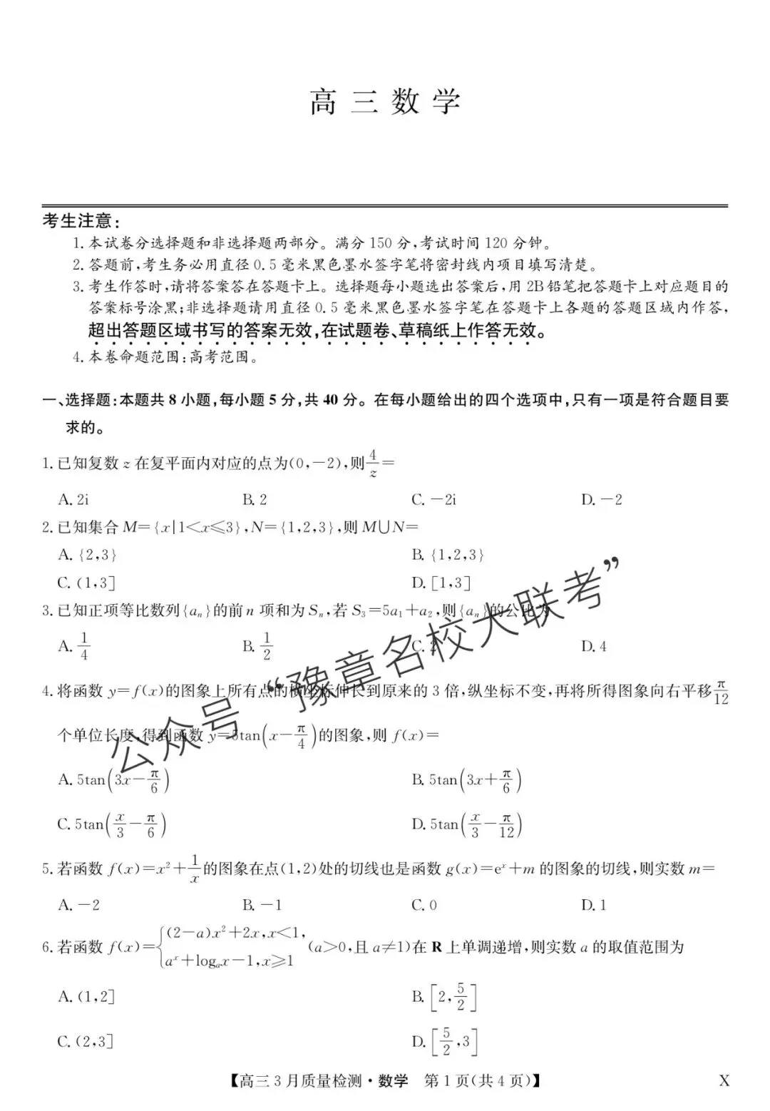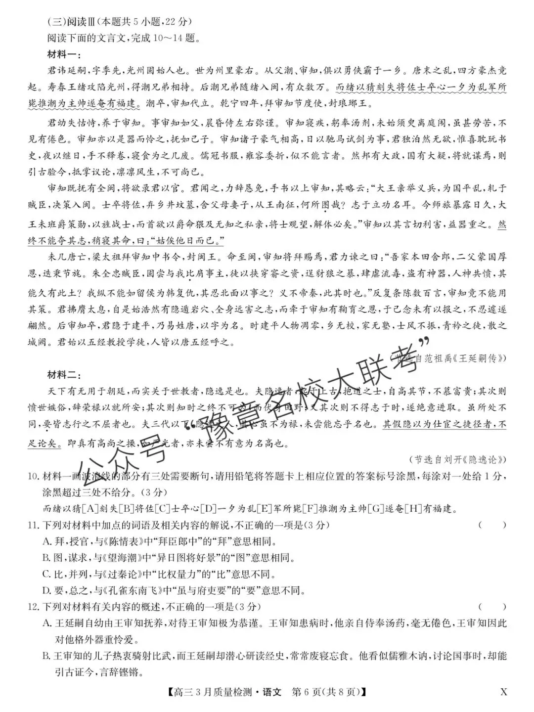 关注公众号【豫章名校大联考】↓↓↓