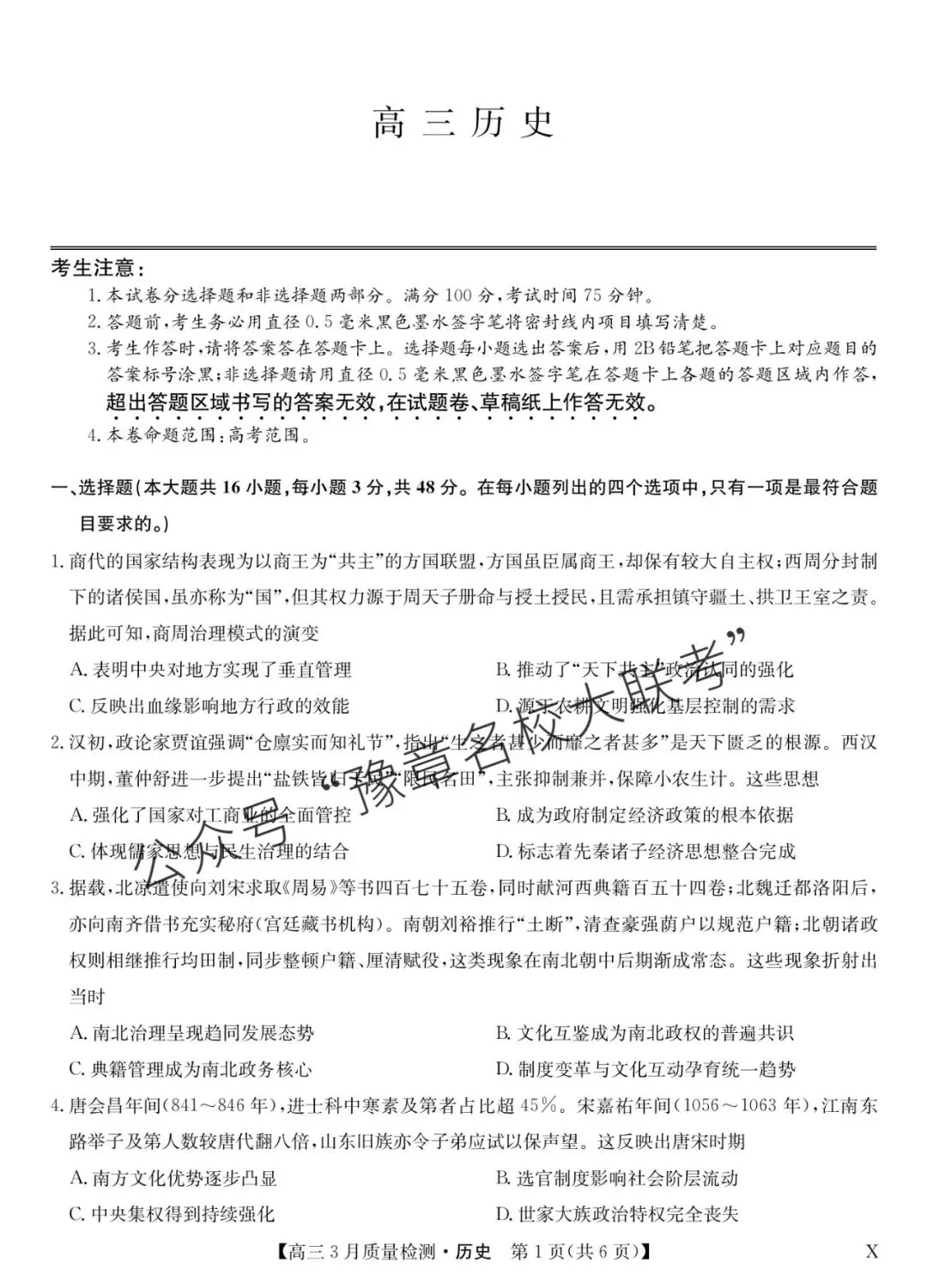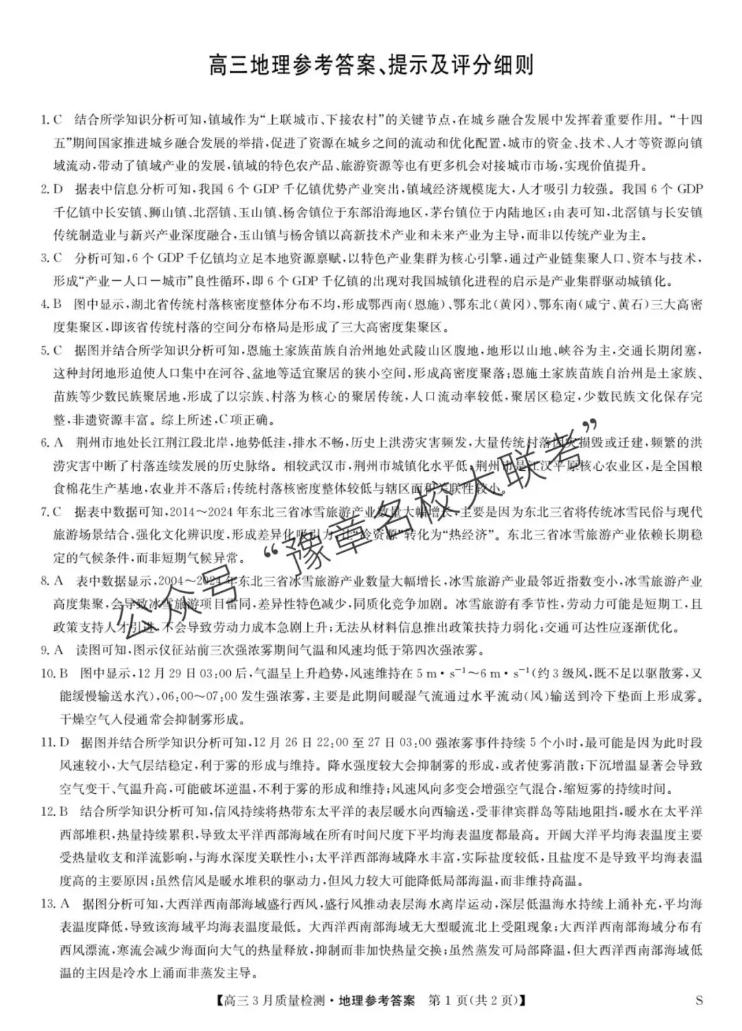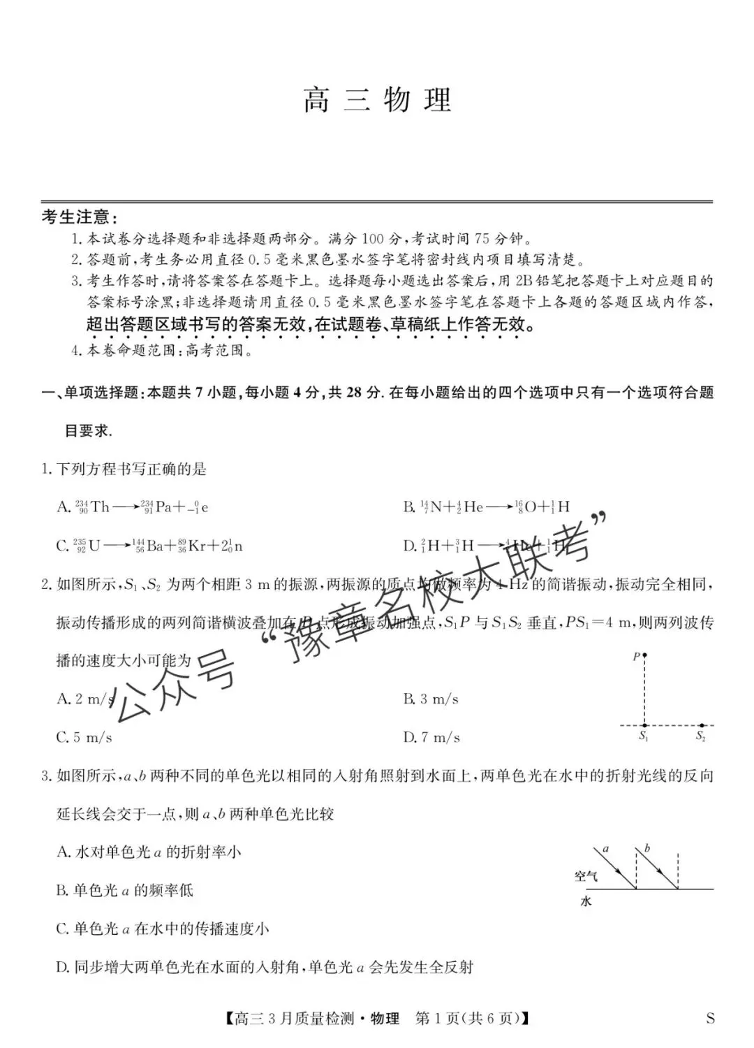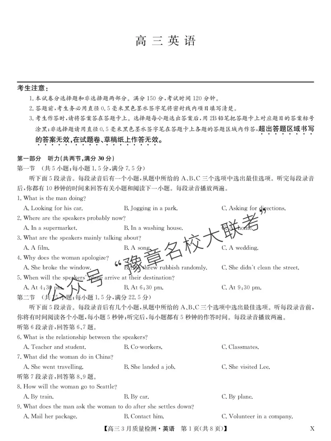 关注公众号【豫章名校大联考】↓↓↓