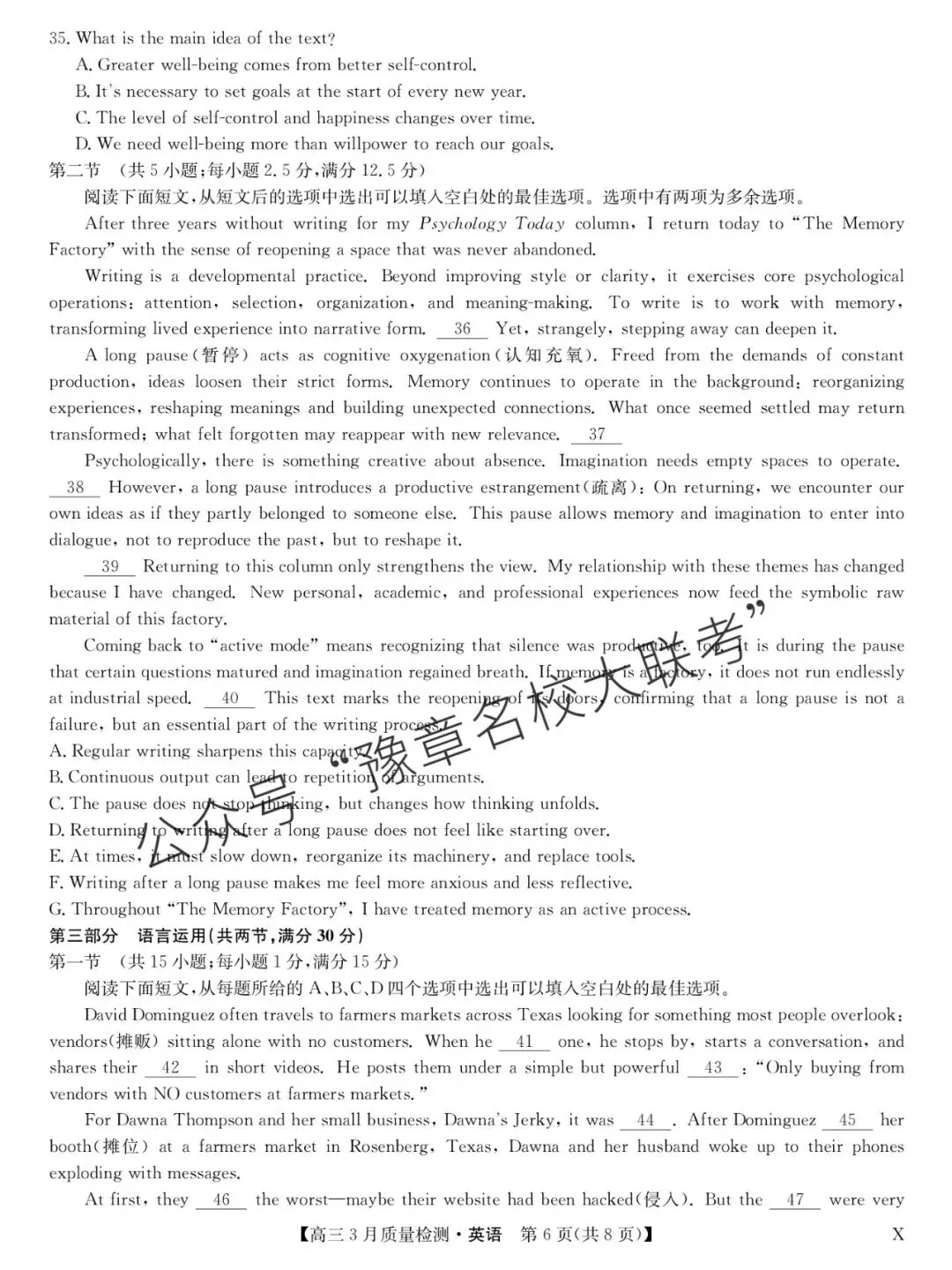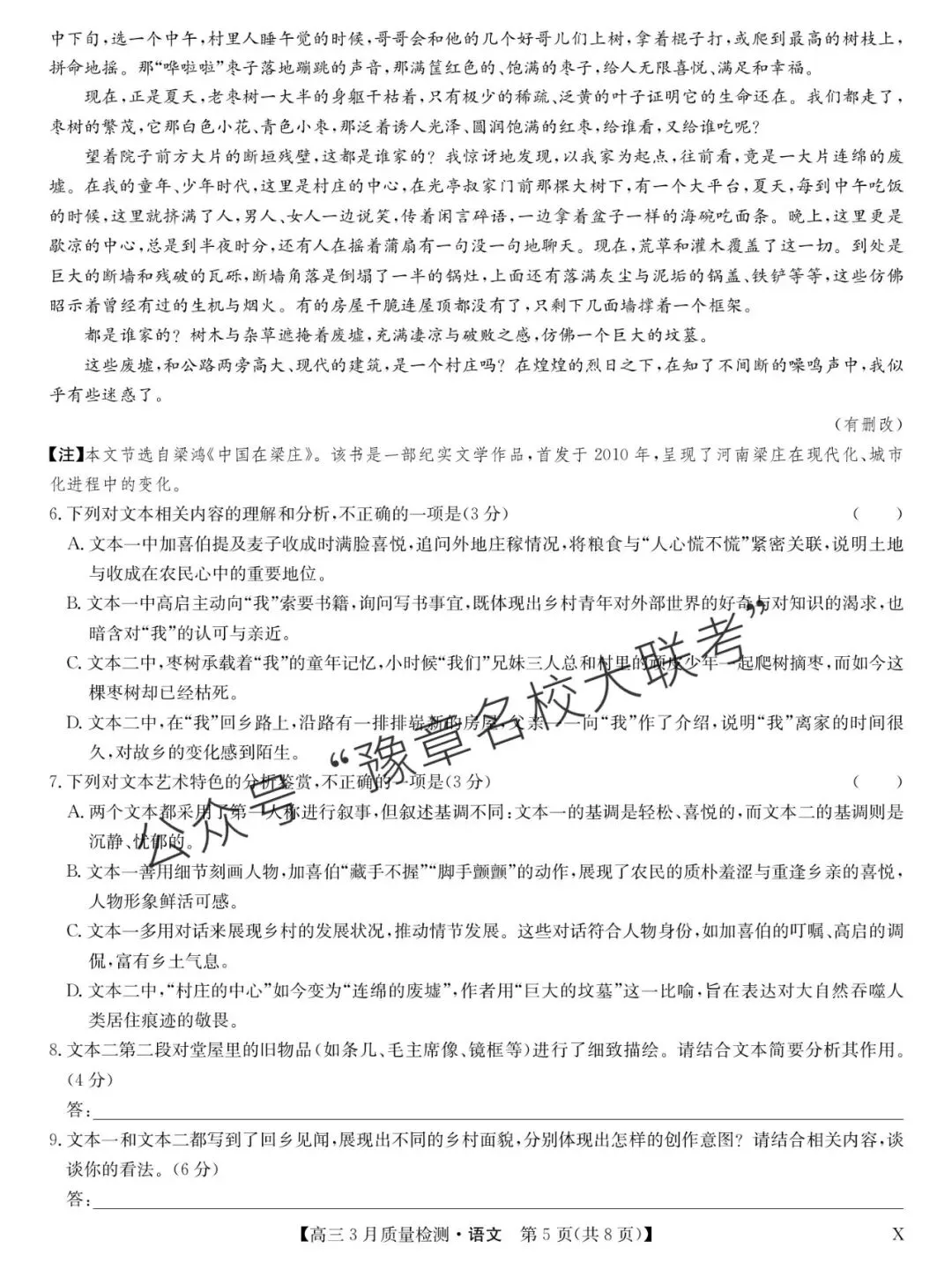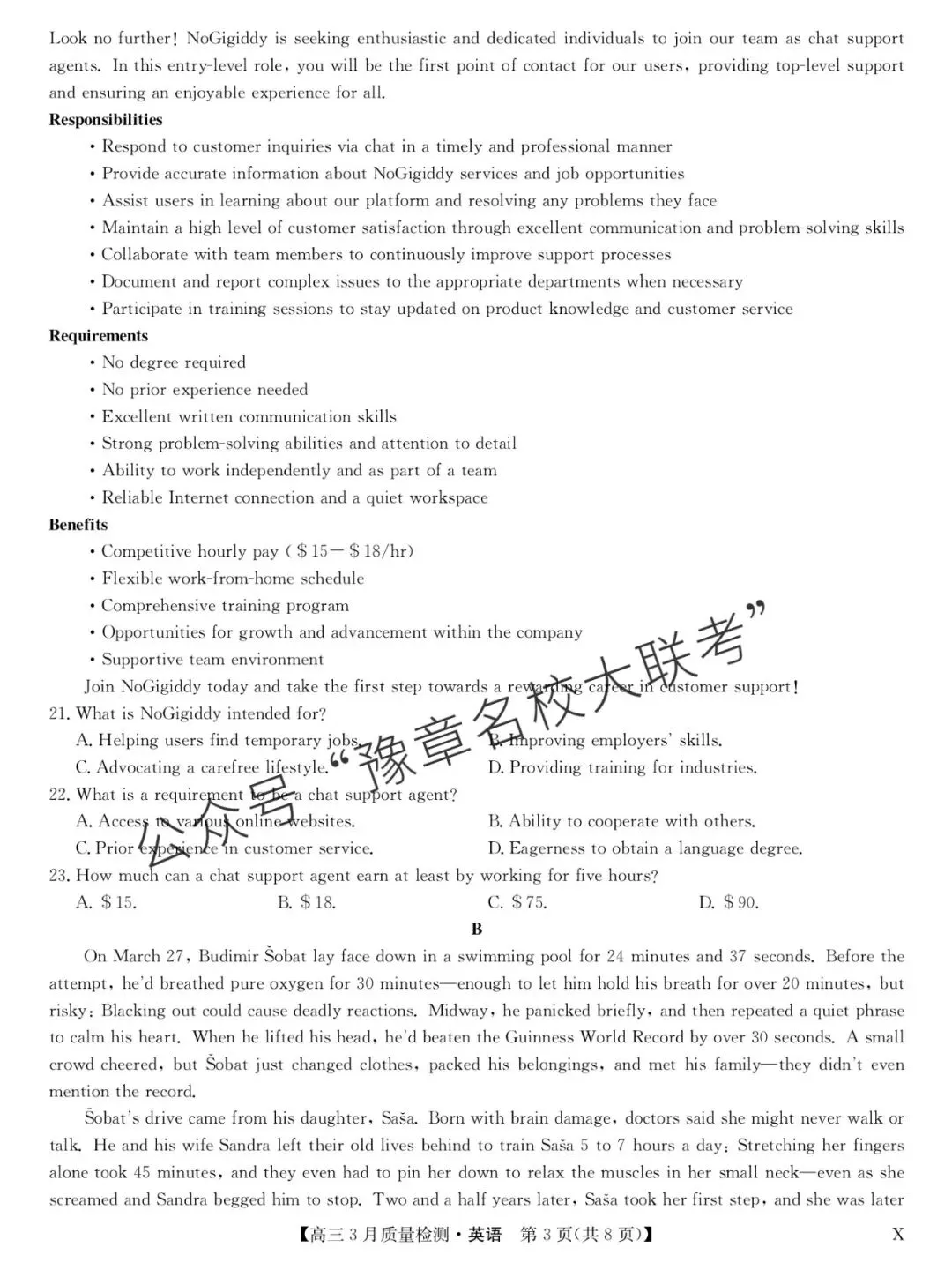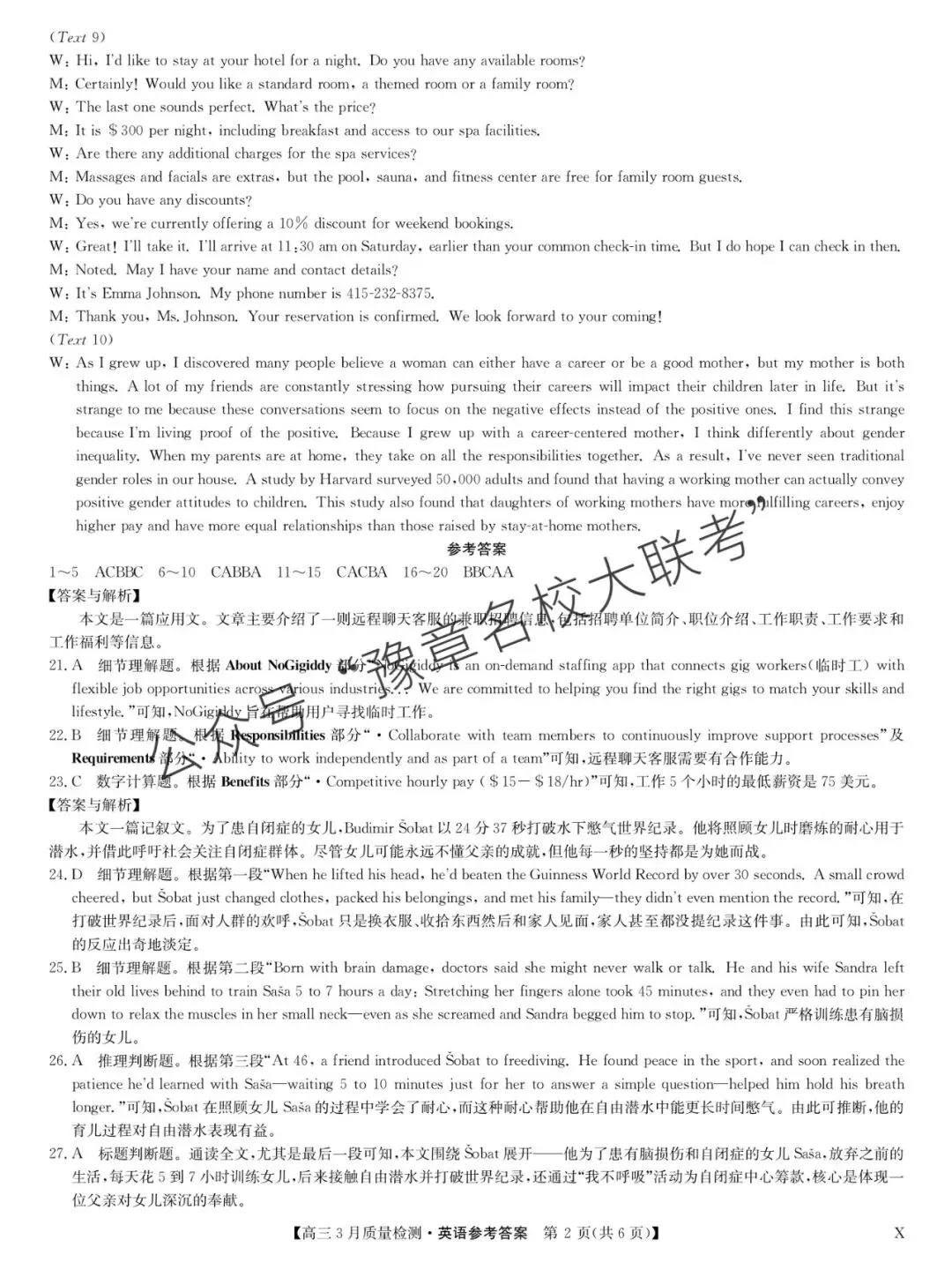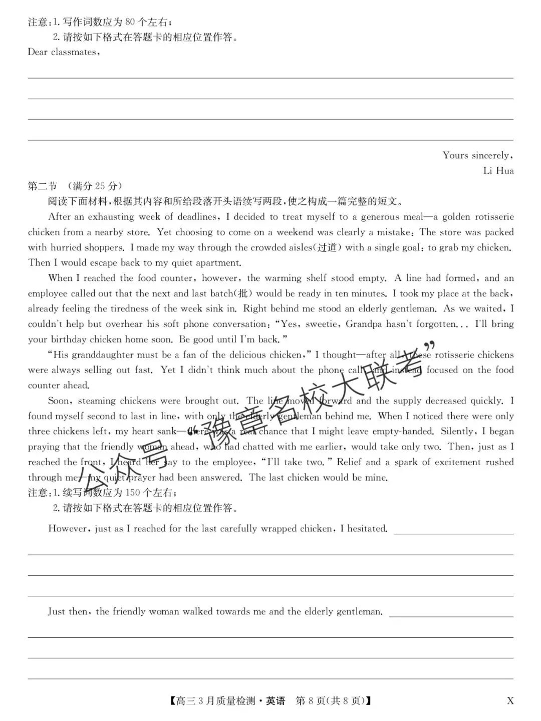 关注公众号【豫章名校大联考】↓↓↓