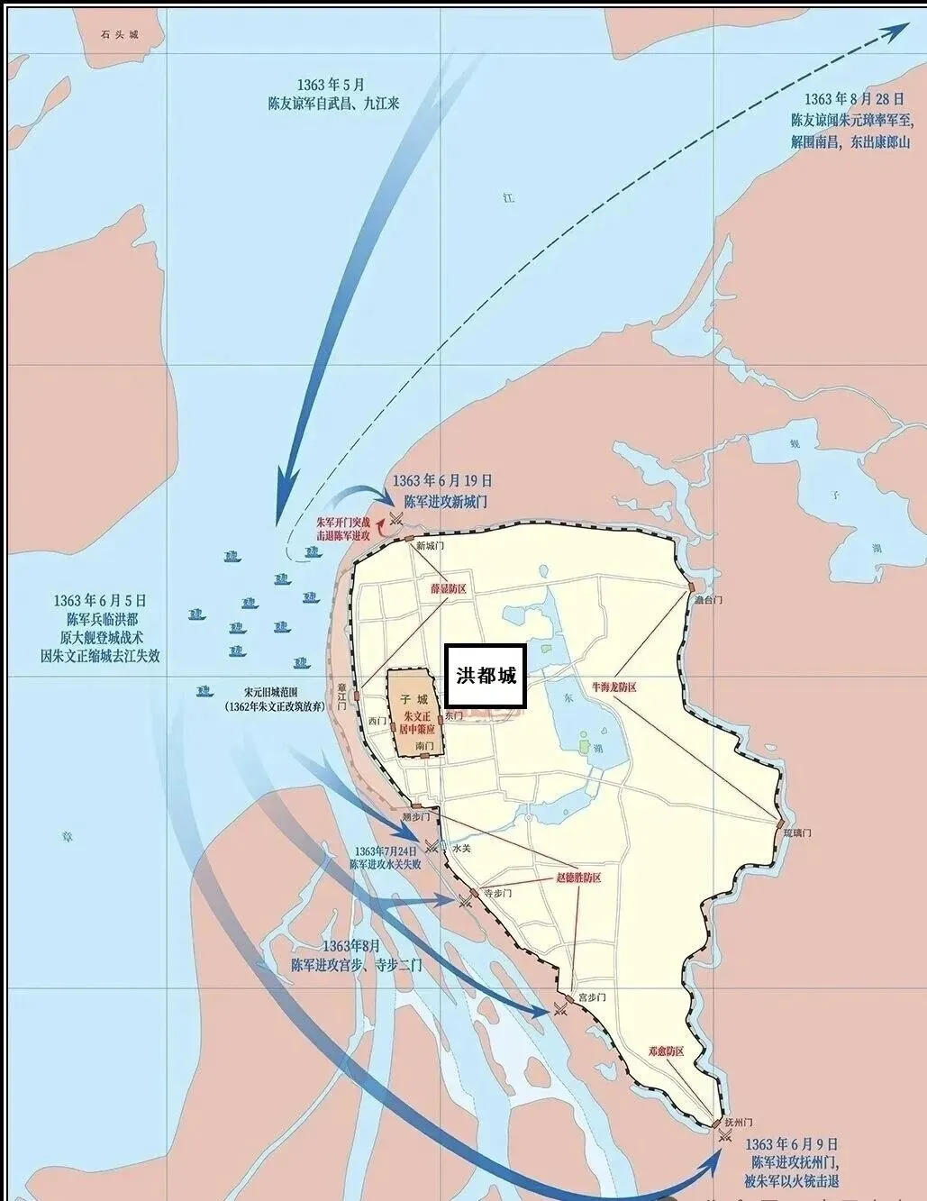 - 战略要地:洪都地处赣江下游、鄱阳湖之畔,是朱元璋势力的西大门,扼控陈友谅东进通道,失守则危及其大本营应天(今南京)。