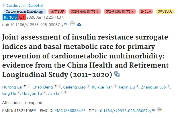📝 今天给大家分享的是南昌大学第二附属医院发表在《Cardiovascular Diabetology》的研究,依托 CHARLS 十年队列:
