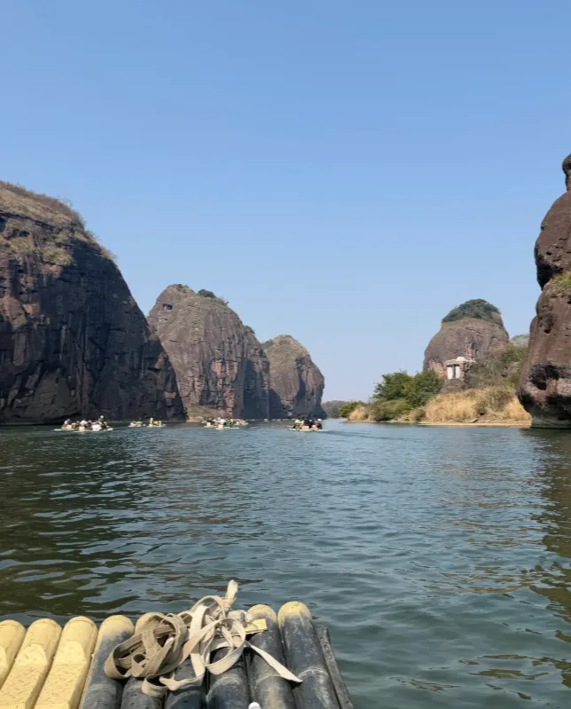 坐竹筏的时候,鞋子最好穿防水的,或者干脆穿凉鞋,水溅上来是常事,别为了护着鞋子坏了兴致。