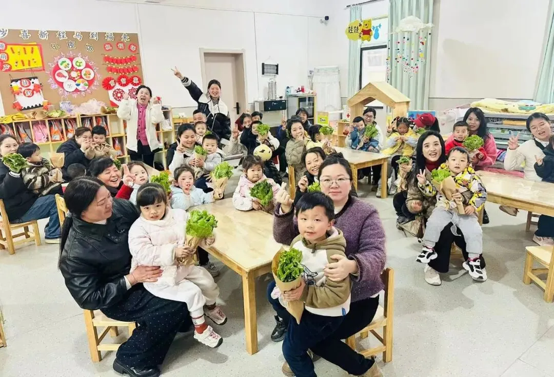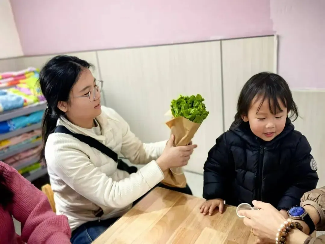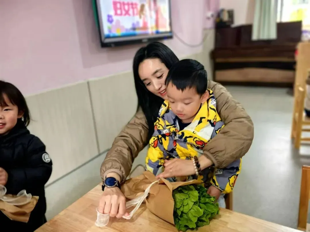 小班宝贝们和家长一起合作,将一颗颗生菜包出最美的样子,爱意不参杂质,清新又真诚。小手与大手协作,专注又认真,每一颗生菜都承载着满满的温情与感恩。