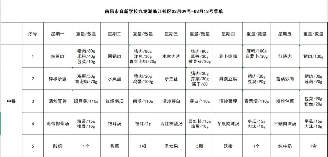 学校食堂精心搭配每日菜谱,荤素均衡、营养丰富。除了时令蔬菜与暖心汤品,每日还提供新鲜水果或牛奶,兼顾口味与健康。