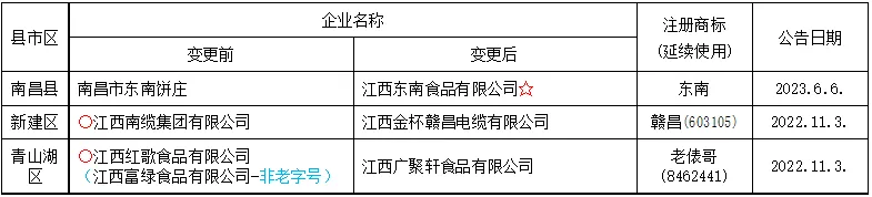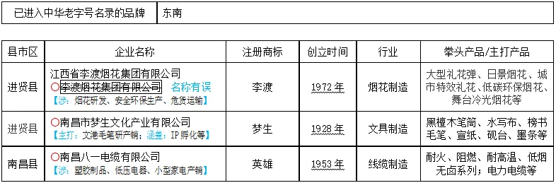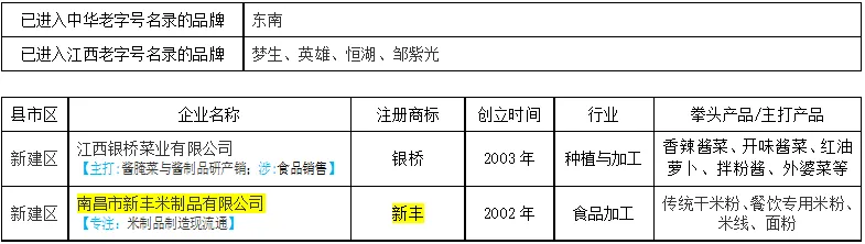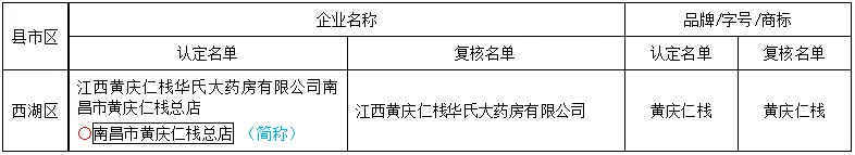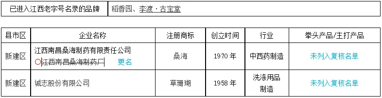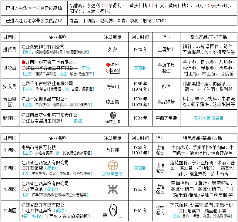 前两批复核(2023年12月5日)名单中南昌市部分中华老字号变更情况表:首批(2006年11月7日)认定429个,江西省有2个,南昌市空缺。