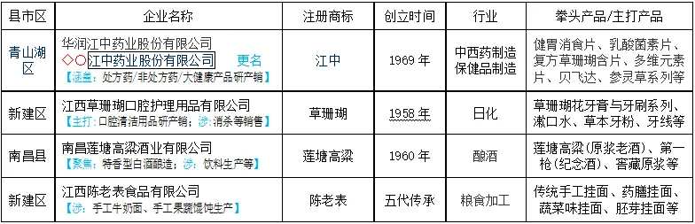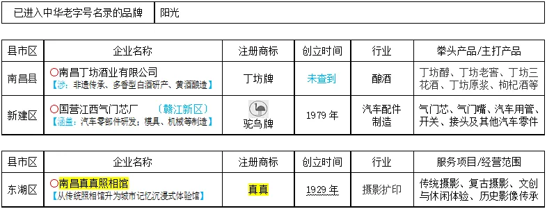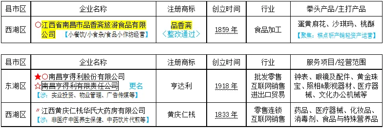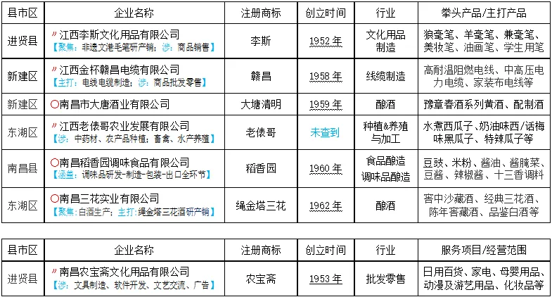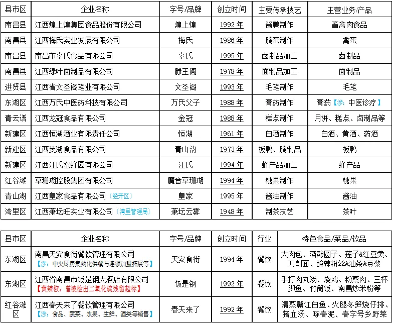 (〃已变更;☆出现在中华老字号认定名单中的名称,★出现在中华老字号复核名单中的名称;◇出现在江西老字号认定名单中的名称;○出现在南昌老字号认定名单中的名称;1828年 从“老字号数字博物馆”查到的创立时间)