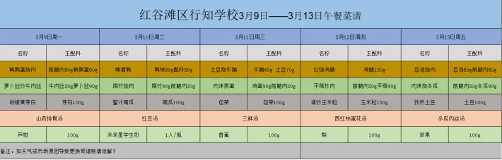 2. 若遇天气突变、市场供应波动等特殊情况,食谱将临时调整,敬请谅解,学校会第一时间公示调整内容。