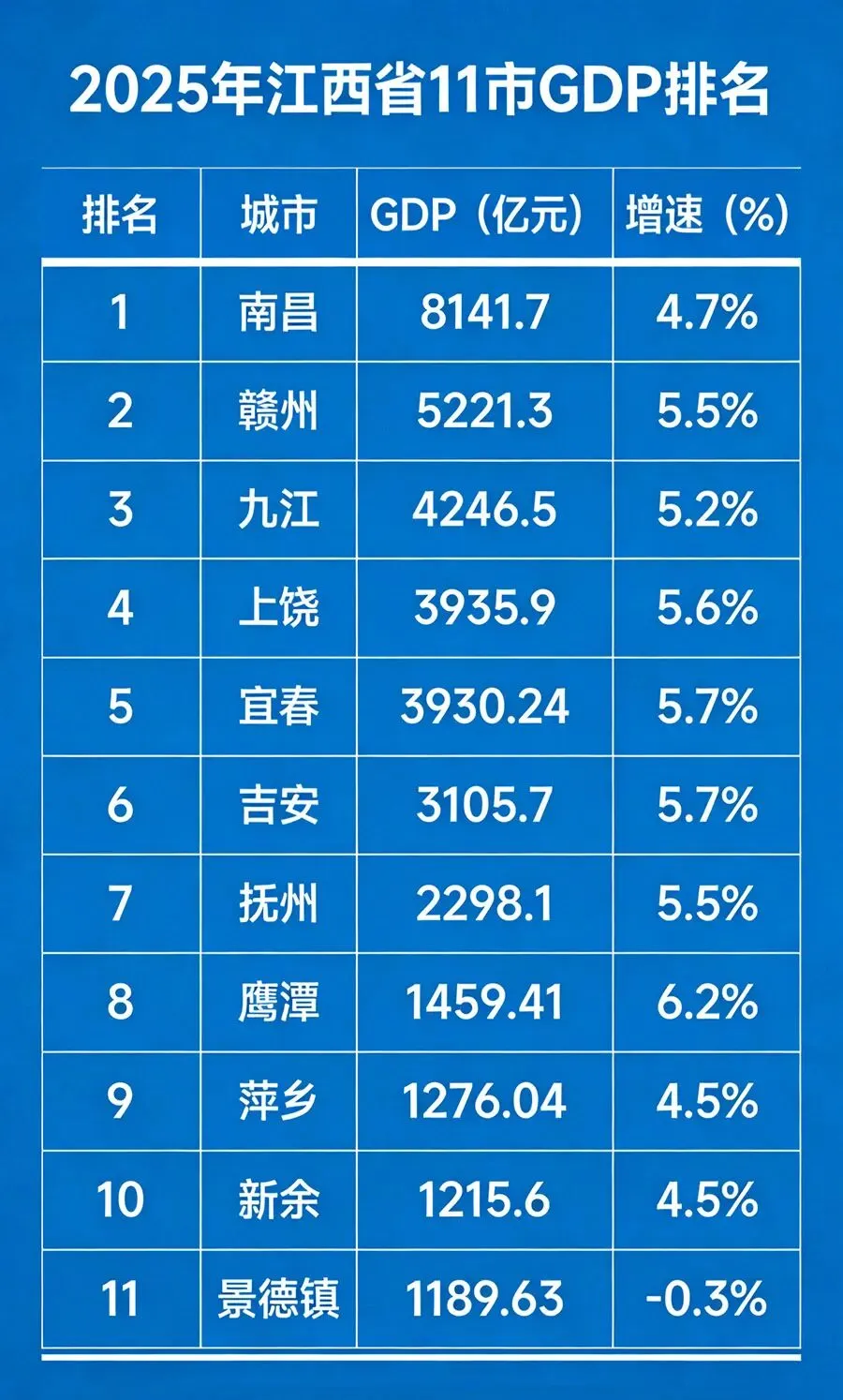 先上总榜(2025年江西11市GDP完整排名)