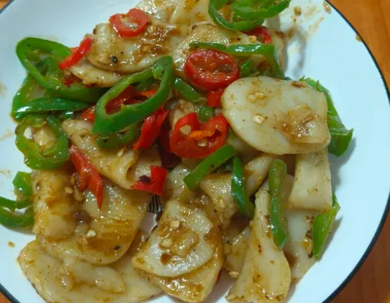 🥢 弋阳炒年糕年糕切成厚片,别太薄。五花肉下锅,煸出油脂的香气,丢一把干辣椒和蒜瓣呛锅。年糕倒进去,大火猛炒,让每一片都裹上油光。淋一圈酱油,加少许水焖两分钟,等汤汁浓稠挂在年糕上,撒把大蒜叶出锅。咬一口,外滑内韧,米的香气在嘴里炸开,实在。