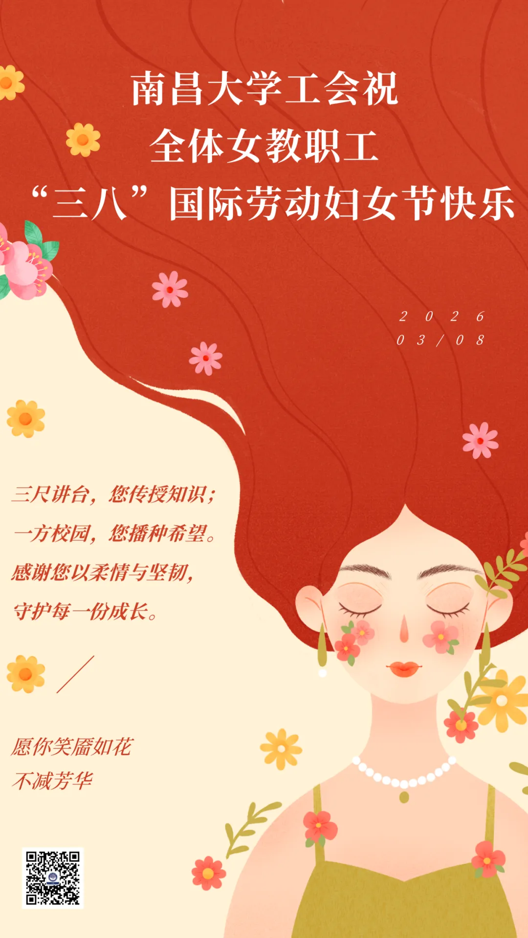 >南昌大学工会祝全体女教职工“三八”国际劳动妇女节快乐