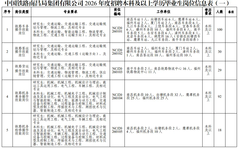 附件:中国铁路南昌局集团有限公司2026年度招聘本科及以上学历毕业生公告(一).pdf