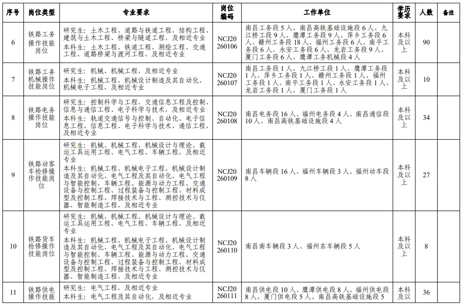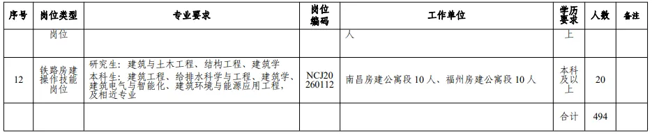 494人!中国铁路南昌局集团有限公司2026年度招聘本科及以上学历毕业生公告(一)
