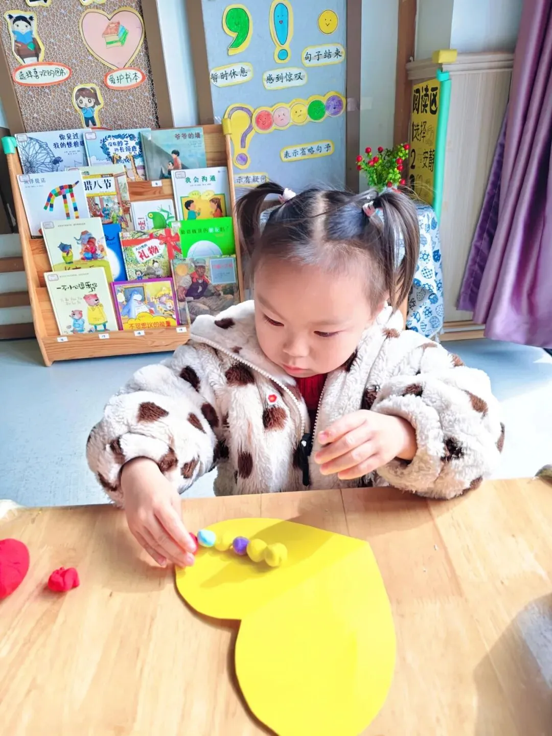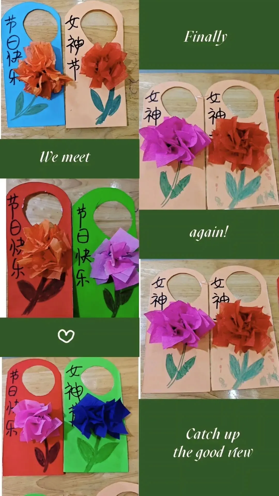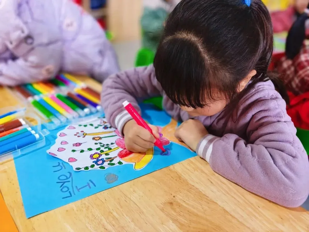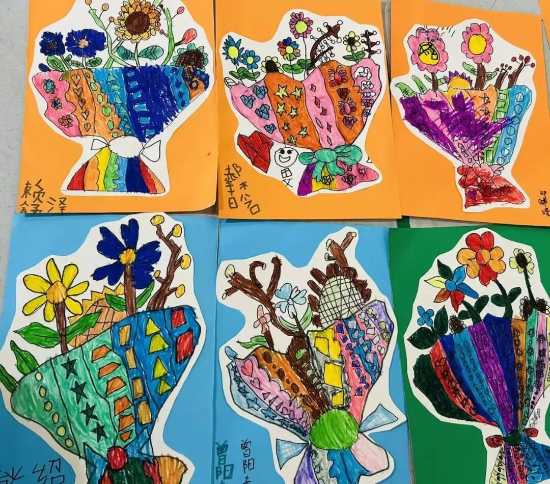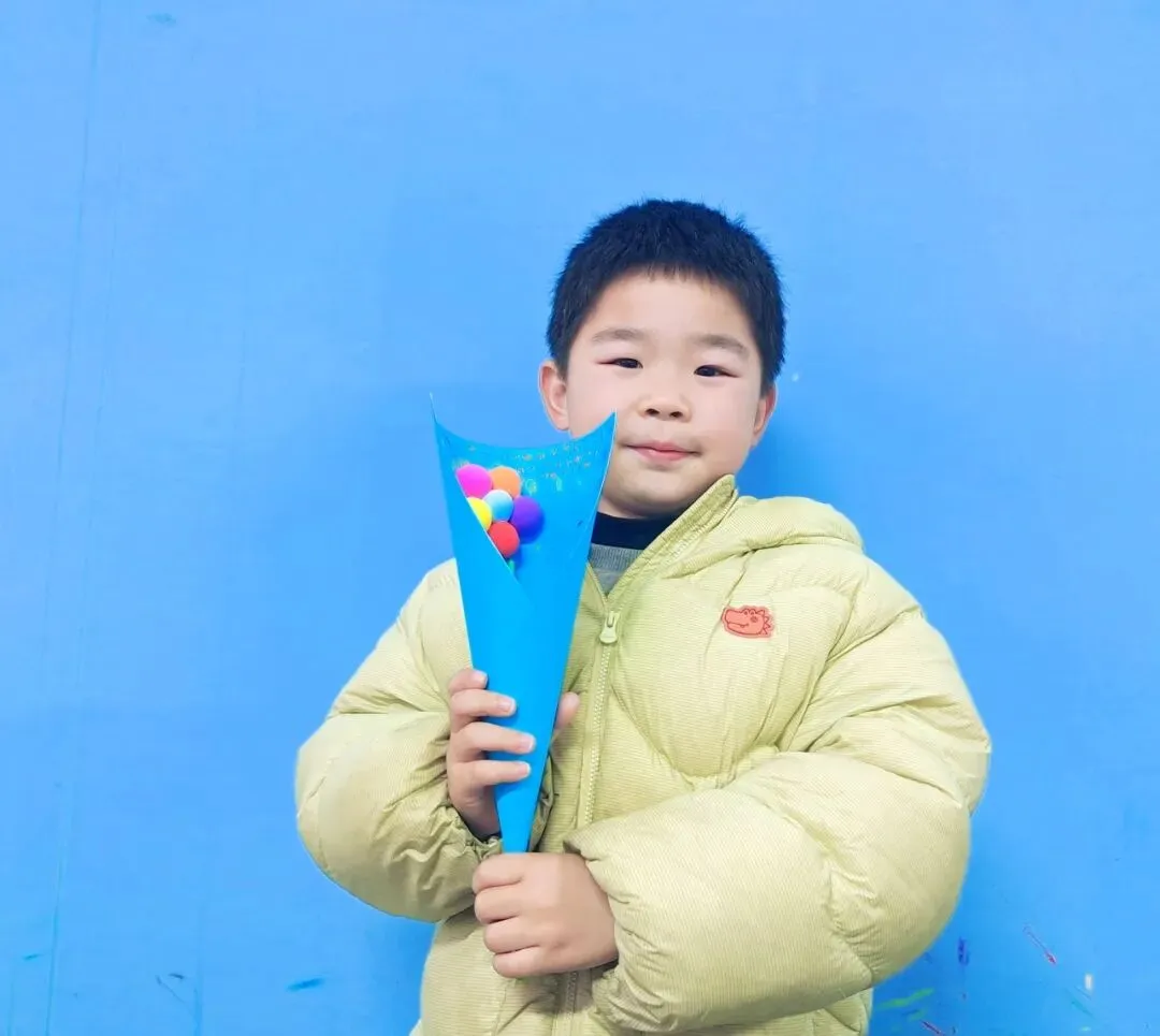 了解了节日的意义后,孩子们迫不及待地化身“小小艺术家”,用稚嫩的双手为心中的“女神”制作独一无二的礼物。各班级活动室里热闹非凡,彩纸、黏土、画笔、纽扣在小手中翻飞。托小班的宝贝们用指纹点画了娇艳的康乃馨;中大班的孩子们则精心设计了立体贺卡、爱心钥匙扣和“爱的奖杯”。每一个褶皱都折得认真,每一笔色彩都涂得用心。孩子们将满满的爱意融入作品,悄悄许下心愿:“妈妈,我永远爱你!”“奶奶,您辛苦了!”