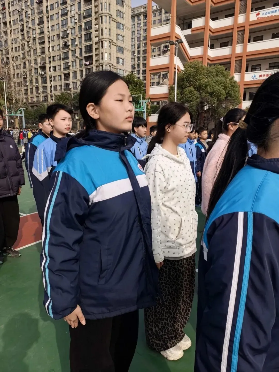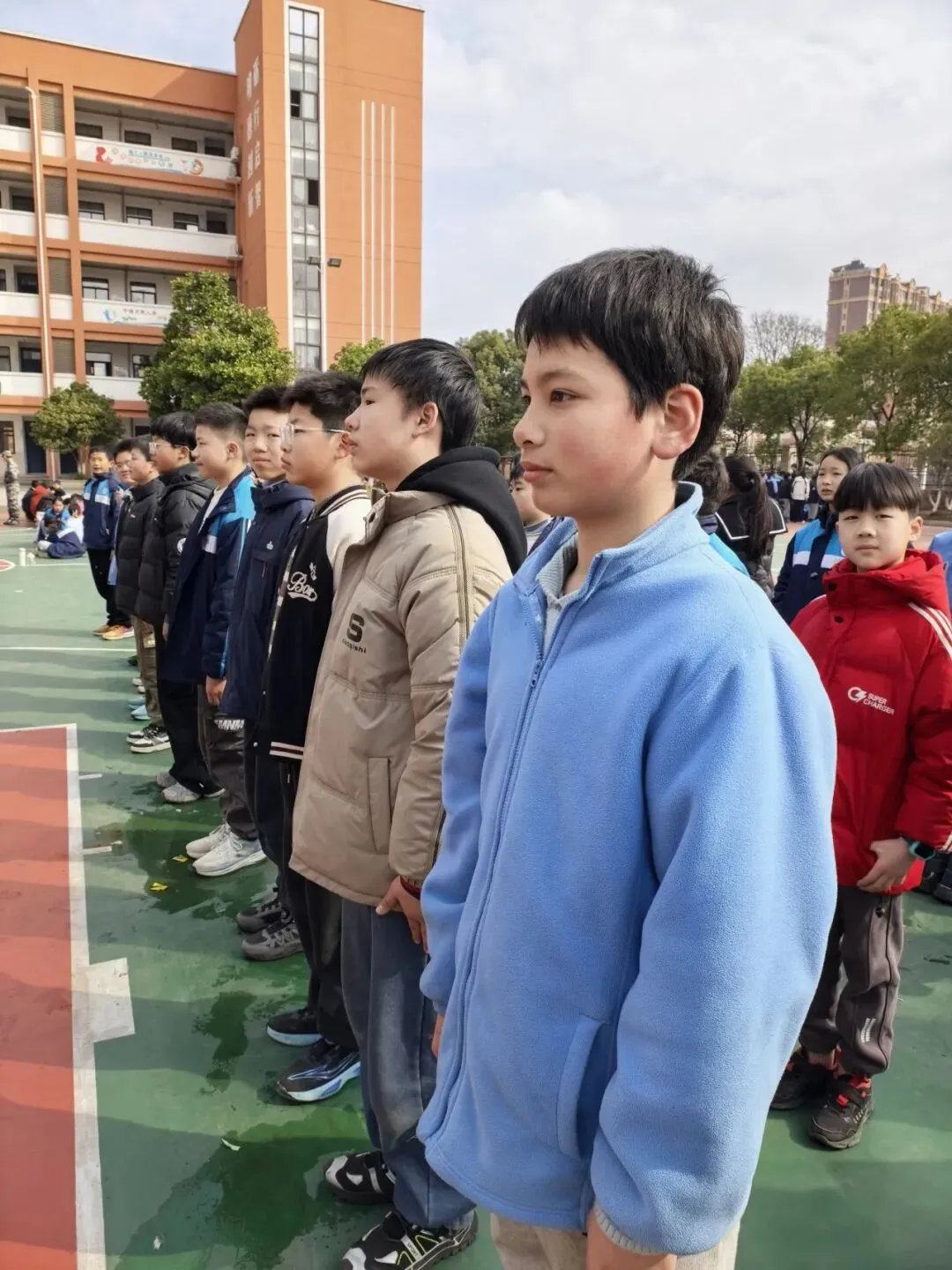训练场上,教练们言传身教,耐心讲解每一个动作要领,从最基础的整队、向右看齐,到军姿、立正、跨立、稍息、踏步等停止间动作,再到原地踏步、齐步分解动作的摆臂练习、臂腿结合练习,每一个细节都严格要求。六年级的同学们不畏艰辛、认真训练,一遍又一遍打磨动作,汗水浸湿了衣衫,却依然保持着昂扬的斗志,充分展现了洪燕学子坚韧不拔的精神风貌。