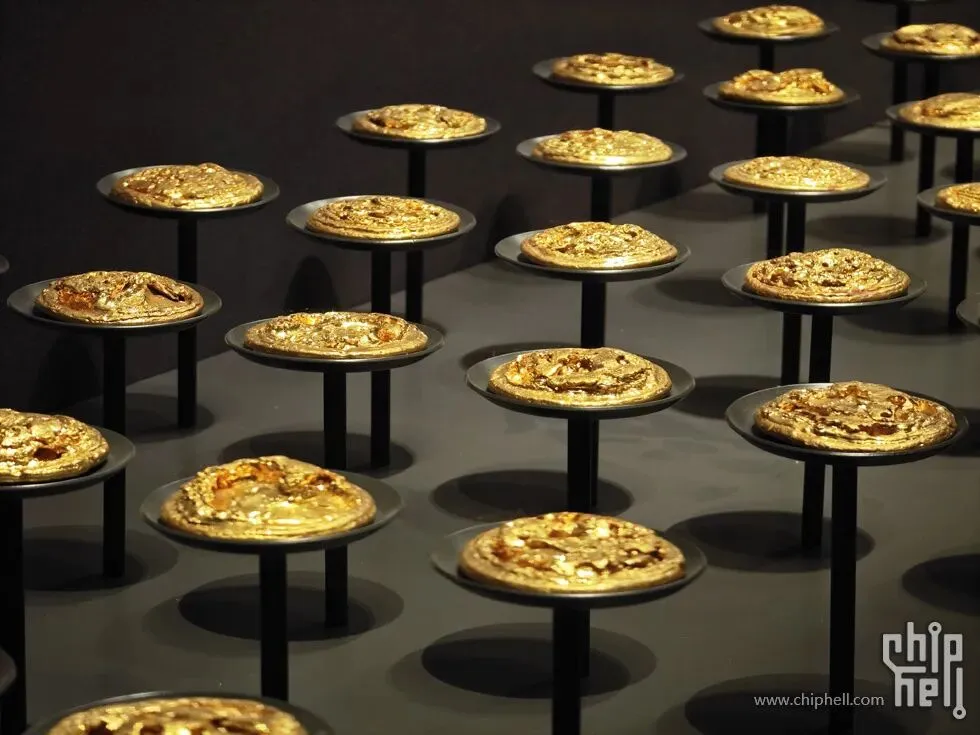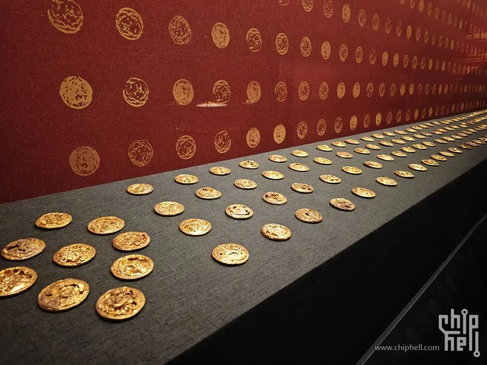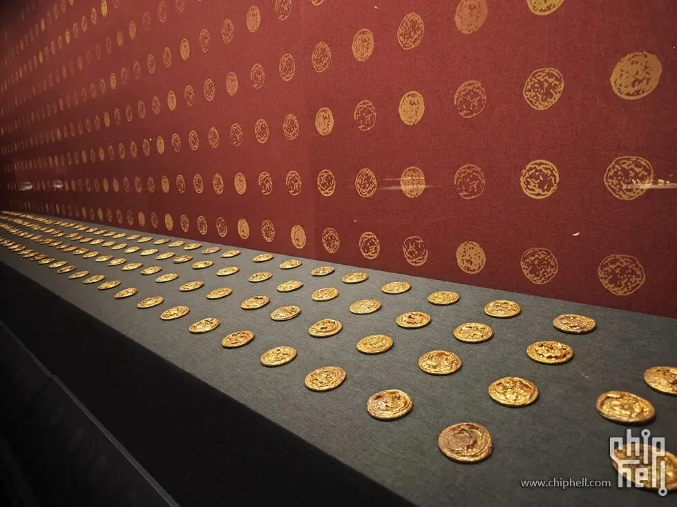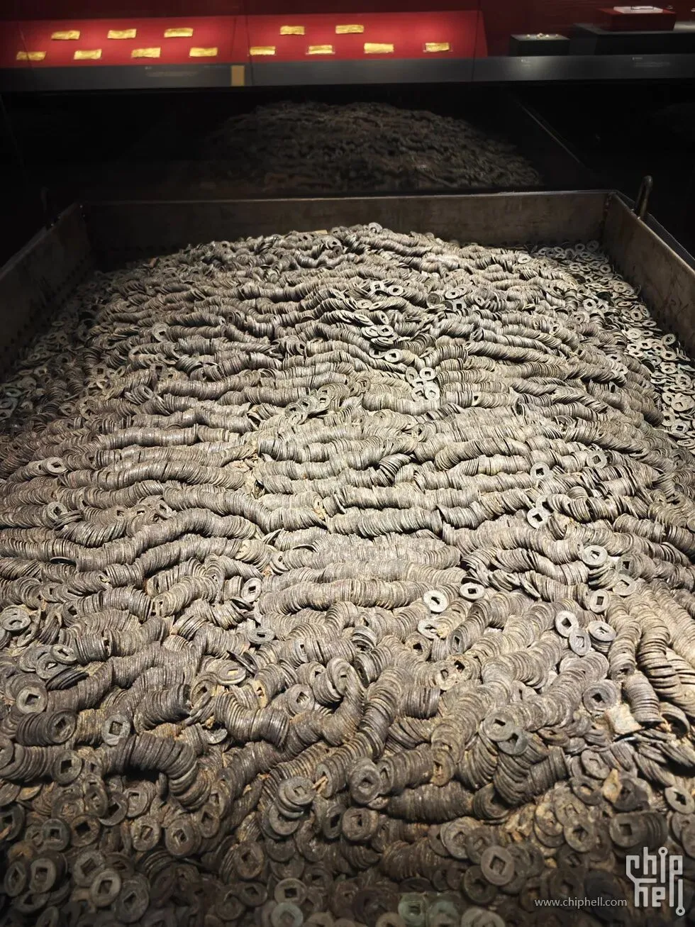 以前的古墓挖掘,出来的金子都是按克算,他这里是按斤算的,一次性出图200多斤(115kg),比前面所有的加起来还多,“不是针对在座的哪一位”,哈哈。至于铜钱,就更夸张了,按吨算,是的,你没看错,500万枚铜钱,一起10吨。