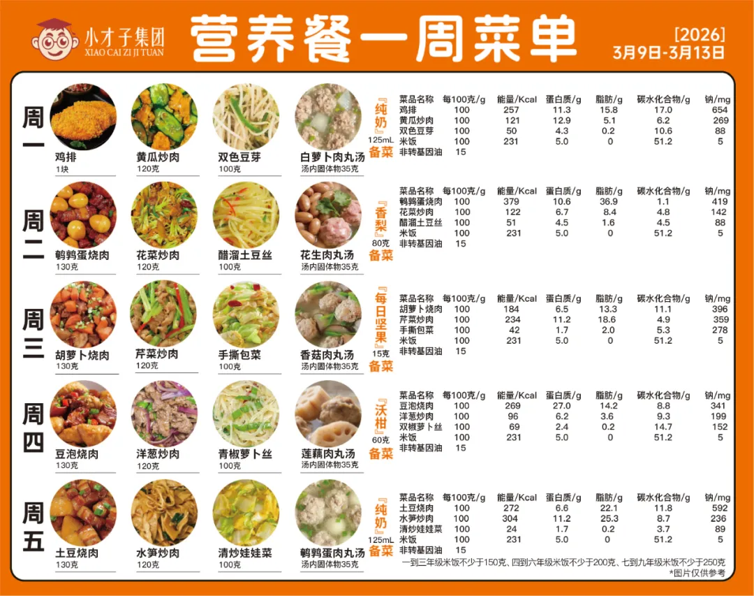 南昌市育新学校红谷滩分校2026年3月(第二周)菜谱【3.9-3.13】