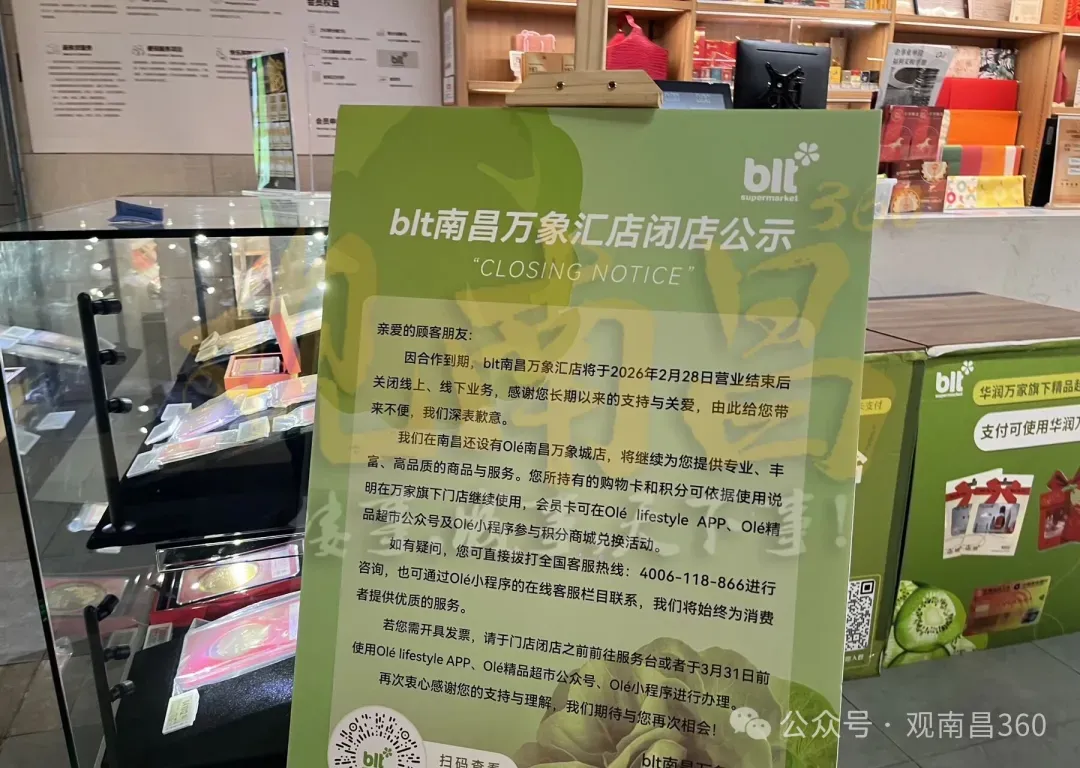 今年2月,位于南昌青山湖万象汇负一楼blt超市官宣