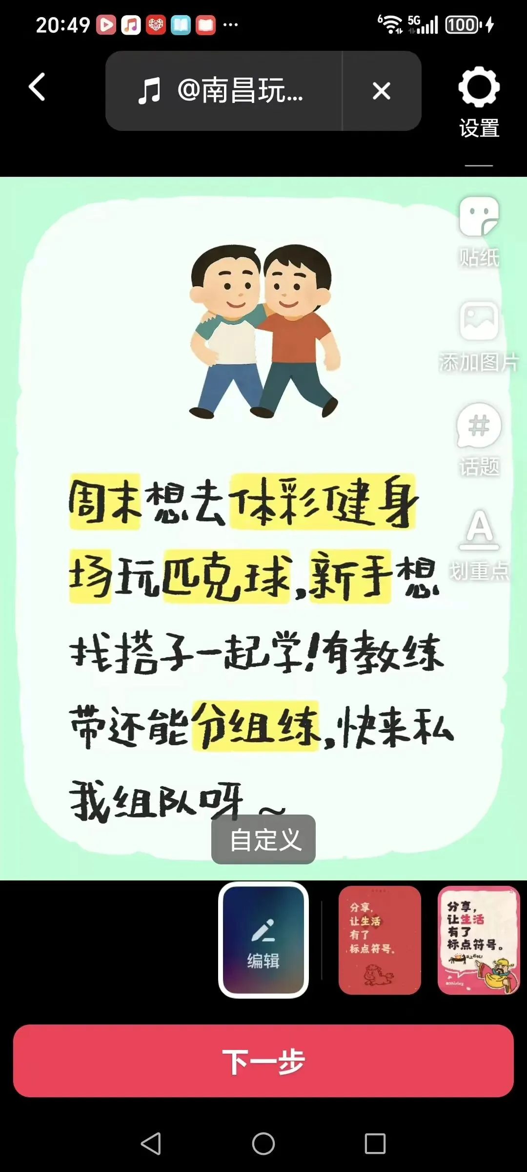 可以改选不同的模版或音乐,也可以不改,点「下一步」