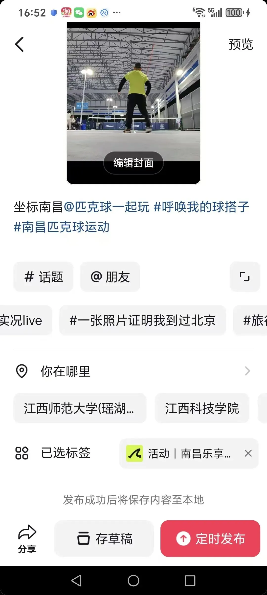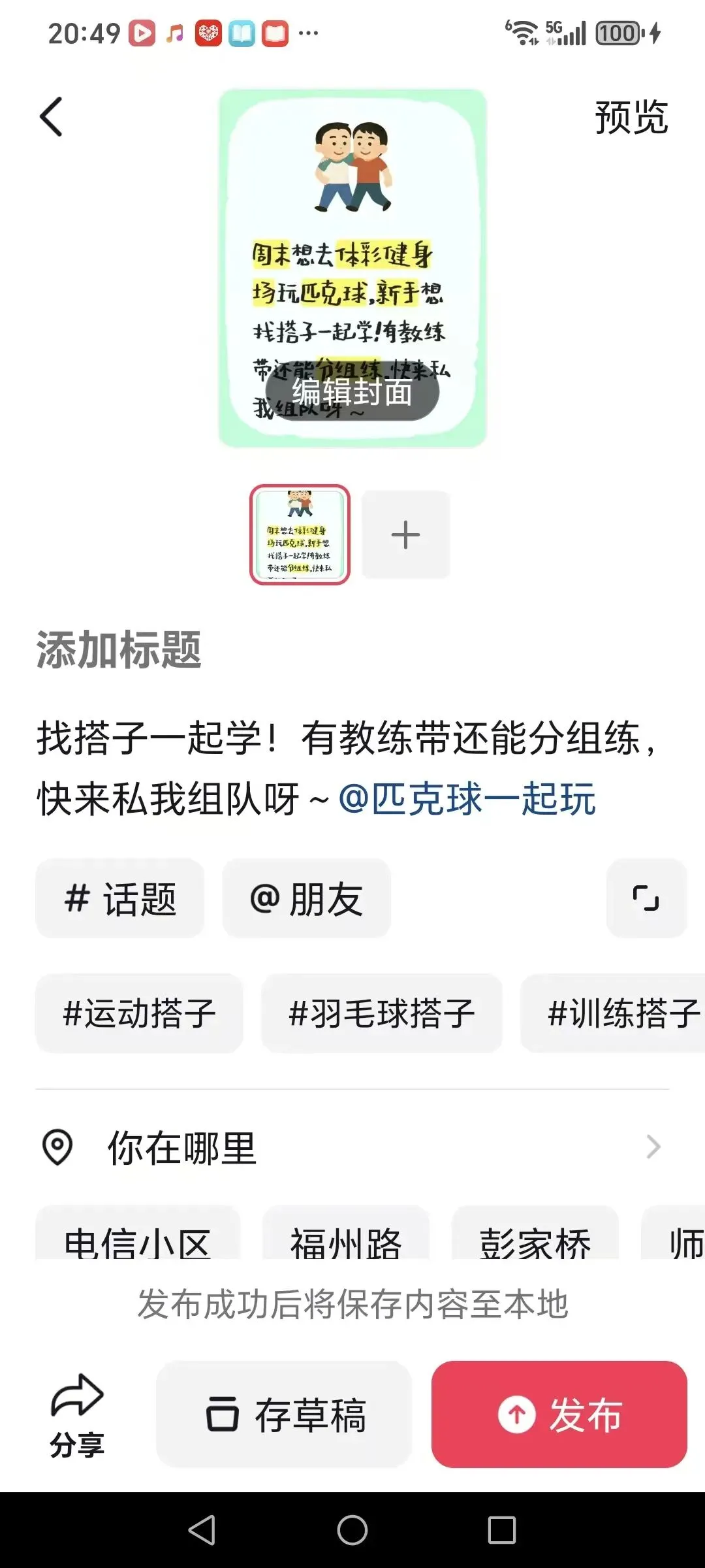点「发布」就成功打卡,因为标题中有@匹克球一起玩 我们也能及时收到你的打卡信息。