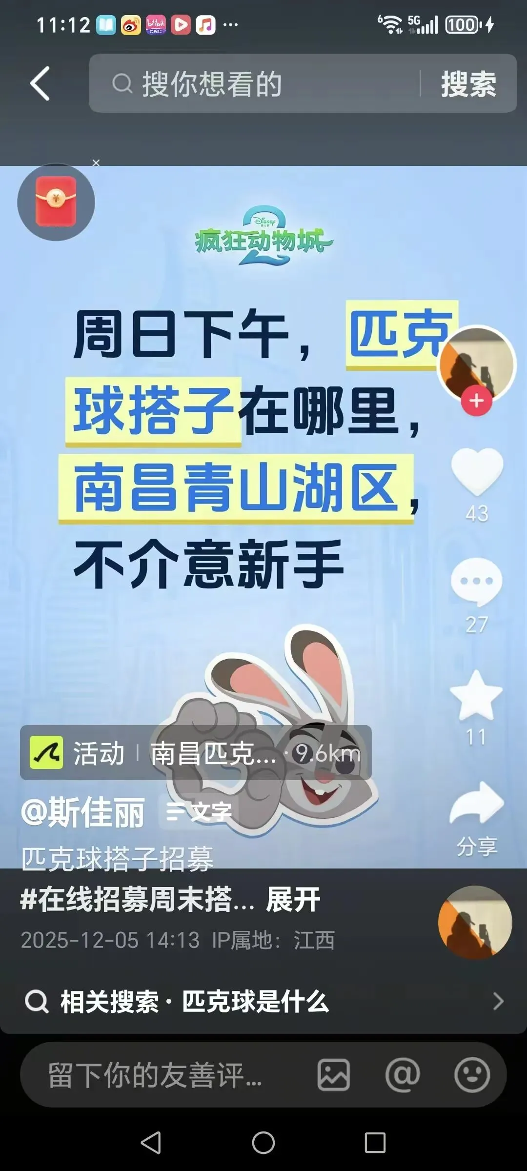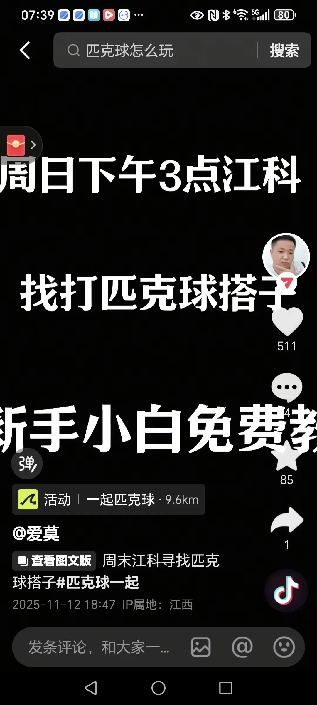 抖音成功打卡样本3 约球互动人数27