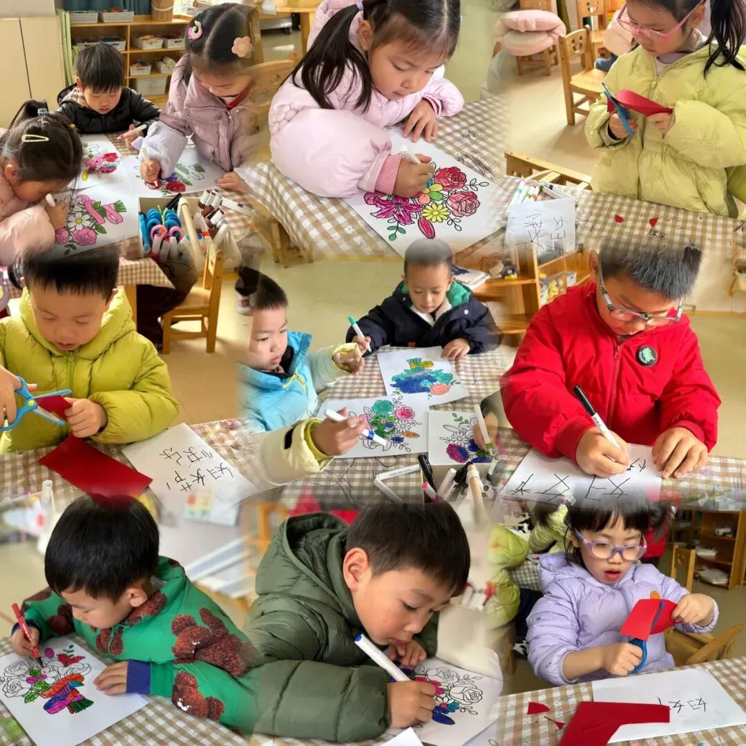 孩子们用画笔勾勒出心中 “她” 的轮廓 —— 有的戴着奶奶的老花镜,有的牵着妈妈的手,有的画着老师弯腰系鞋带的身影。每一笔线条,都是孩子对 “她” 最直观的看见与懂得。