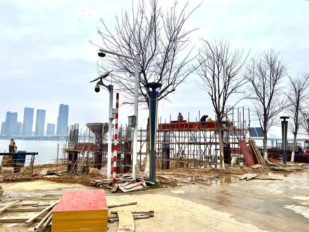 去年,除两滩七湾外,我们发现朝阳江滩公园突然出现新的施工工棚。