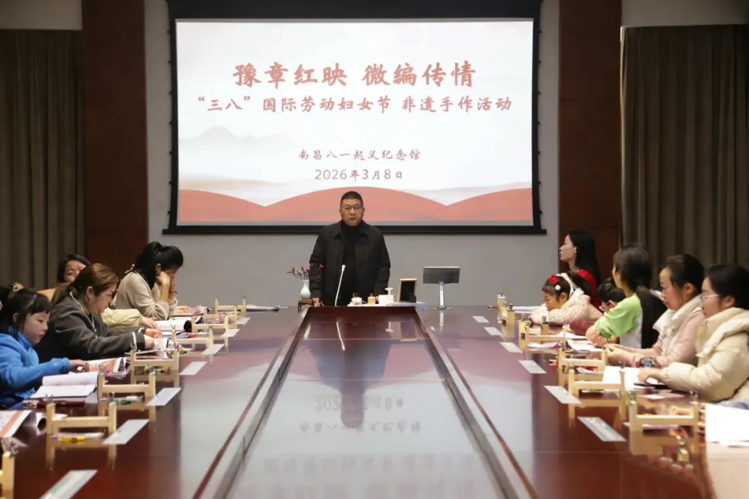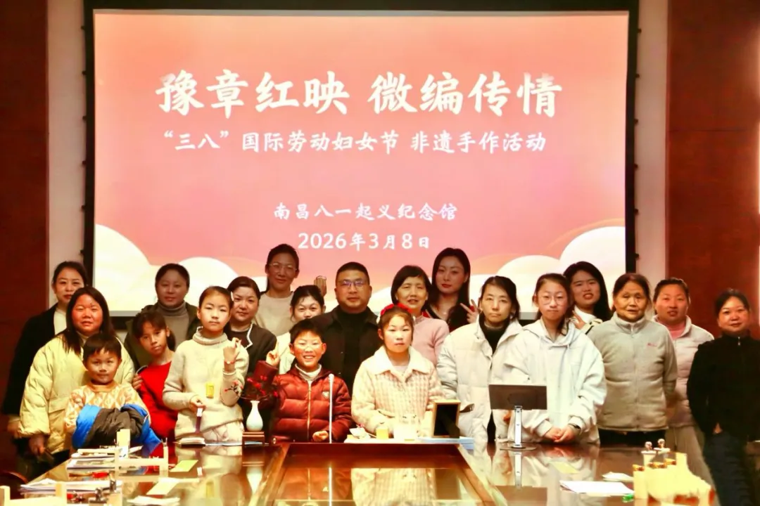 春风送暖,巾帼芳华。在“三八”国际劳动妇女节这个充满暖意的日子里,南昌八一起义纪念馆以“豫章红映 微编传情”为主题,举办了一场别开生面的非遗手作活动,邀请到了38位女性观众齐聚馆内,在指尖流转间邂逅非遗之美,在红色场馆中共度别样佳节。