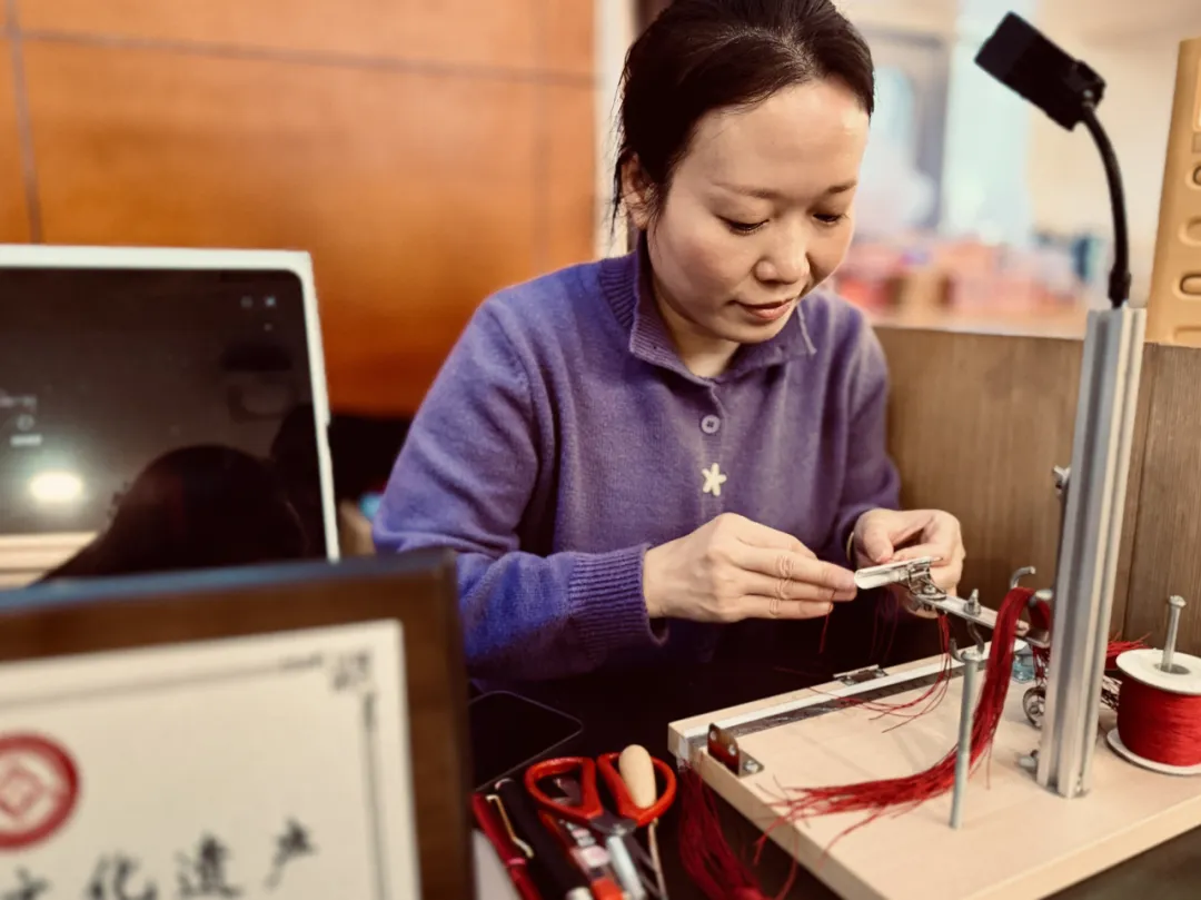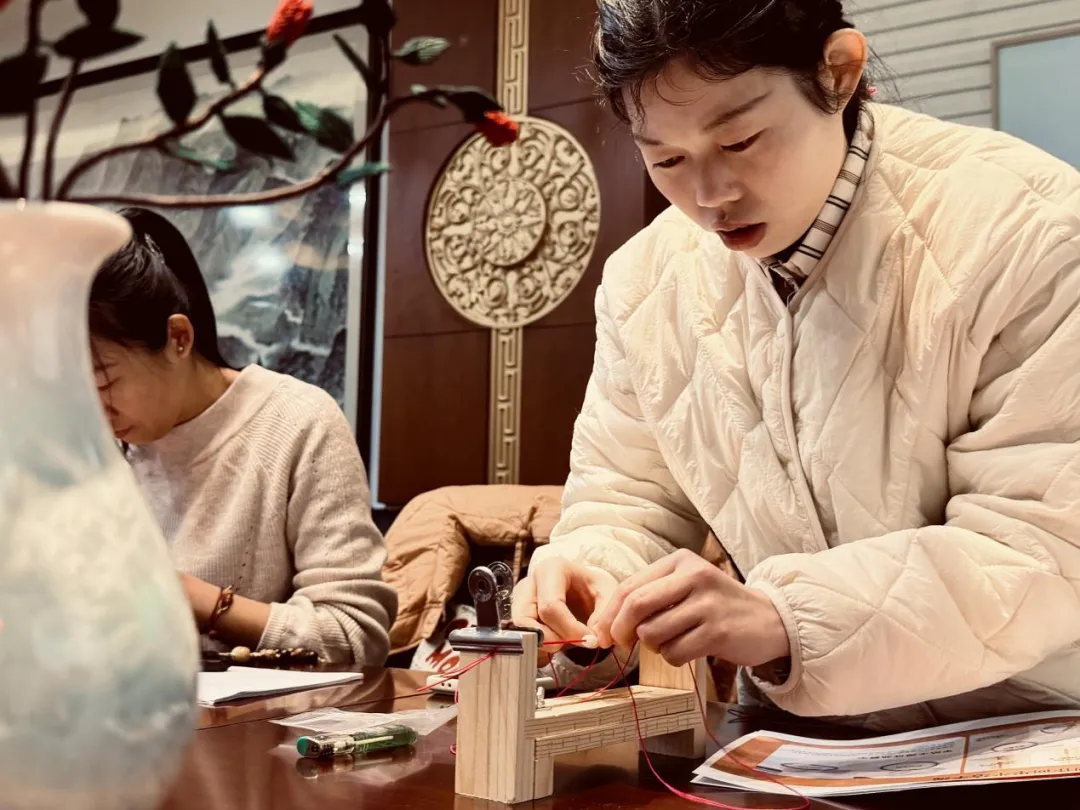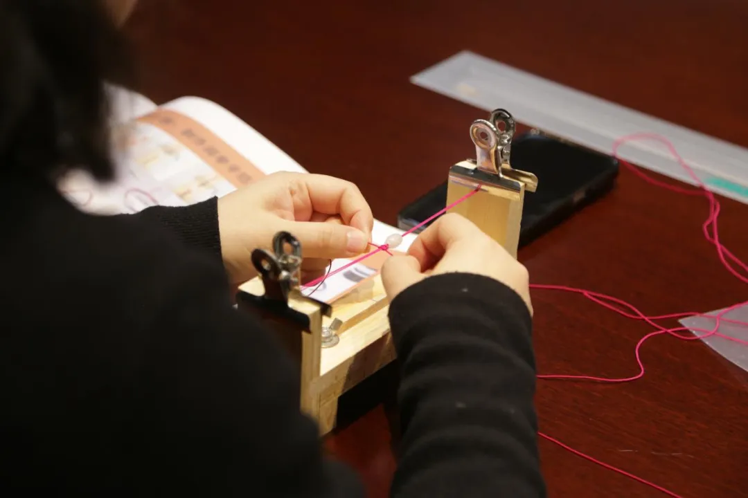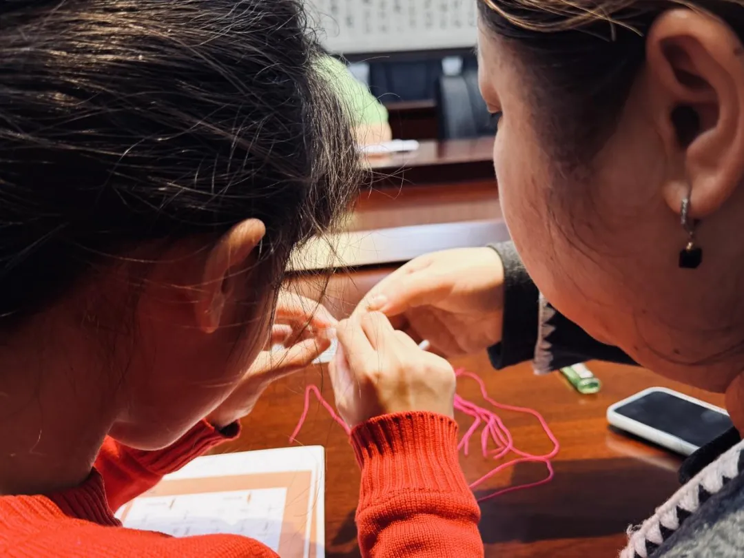 随后的实操体验环节将活动推向高潮。大家凝神屏气,一根根彩线在指尖穿梭、缠绕、打结,渐渐蜕变为精巧的微编饰物,将团圆、平安的美好寓意,与对巾帼力量的敬意一同编织其中。现场还有亲子家庭参与其中,大人与孩子携手创作,温馨氛围格外动人。