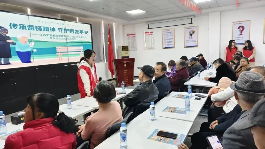 3月5日,望城镇乐望社区联合江西文演投资有限公司组织开展“学雷锋·反诈护老”主题志愿服务活动。活动中,志愿者聚焦老年群体高频受骗场景,通过案例讲解、现场答疑等形式,把专业反诈知识转化为通俗易懂的“家常话”,提醒老年人守好自己的“养老钱”。