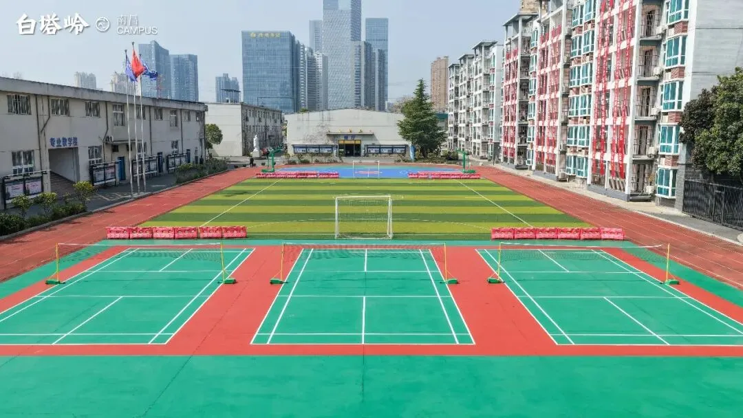三个露天羽毛球场全新落成,并排展开,现已焕新开放。绿底白线,整洁明亮。没有围墙阻隔,只有开阔的天空与自由的空气。在这里,同学们除了能跑跑步、踢踢足球、打打篮球和羽毛球外,在这里上室外课、拍航拍毕业照、自拍等也是一道道美丽的风景。对于美术生来说,八个多月的集训是逐梦路上至关重要的一程!南昌白塔岭作为美术生追梦路上的同行者,除了强劲的师资和严格的教学管理外,在食宿方面,也是想大家之所想,不遗余力地给小马们提供最贴心的服务,让大家都能够住的舒心,吃的放心!提到白塔岭南昌校区的食堂,总能引起小马们谈不完的校园记忆。美味与安全同时在线,让小马们为之惊叹。南昌白塔岭一直全面提升餐饮食品安全管理水平,更好地保障全体师生“舌尖上的安全”。在备战联考的日子里,能放松心情的方法有很多,但是除了温馨的寝室,没有什么能与食堂媲美。因为食堂是最像家的地方,一个填饱你的胃,满足你的味蕾的美妙地方。食堂美食琳琅满目,惊艳的是味蕾,温暖的是内心。愿食堂的美食,陪伴大家度过这个刻苦而难忘的青春。愿塔里的食光,成为你青春中最难忘的三餐记忆。在一楼食堂的左右两边,是生活超市和画材店,里面的生活必需品和画材应有尽有,充分满足小马们的各类需求。南昌白塔岭拥有5栋公寓式学生宿舍楼,均按户入住,每户配置两间卧室,一间洗漱房,一间独立卫生间,以及一间独立的浴室,干湿分离,布局合理,是理想的家庭式宜居之所。我们的宿舍温馨、舒适,保护隐私的床幔,独立的衣柜以及床头储物柜……细节之处无不体现着真诚的关怀。搭配着床头柜、书桌、落地窗及休闲阳台,这里已然成为了同学们第二个家。加上配置敞亮的洗漱间,智能便捷的洗漱设备,同学们再也不用担心早上起来排队洗漱而迟到了。爸爸妈妈请您们放心,虽然这里是孩子们第一次来到离家这么远的地方独自生活,身边没有您们的陪伴和照顾,但是这里有老师、有宿管阿姨、有食堂师傅,安全、细心的照顾着孩子们,像家人般,无微不至。这个春天,白塔岭校园已全面焕新。从敞亮的教室、舒适的宿舍,到现代化的运动场地、充满绿意的学习环境,一切都已准备好,等待孩子们的到来。愿他们在崭新的校园里安心学习、自在成长,用画笔绘出属于自己的广阔未来。