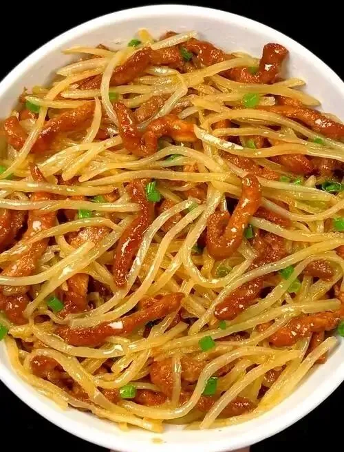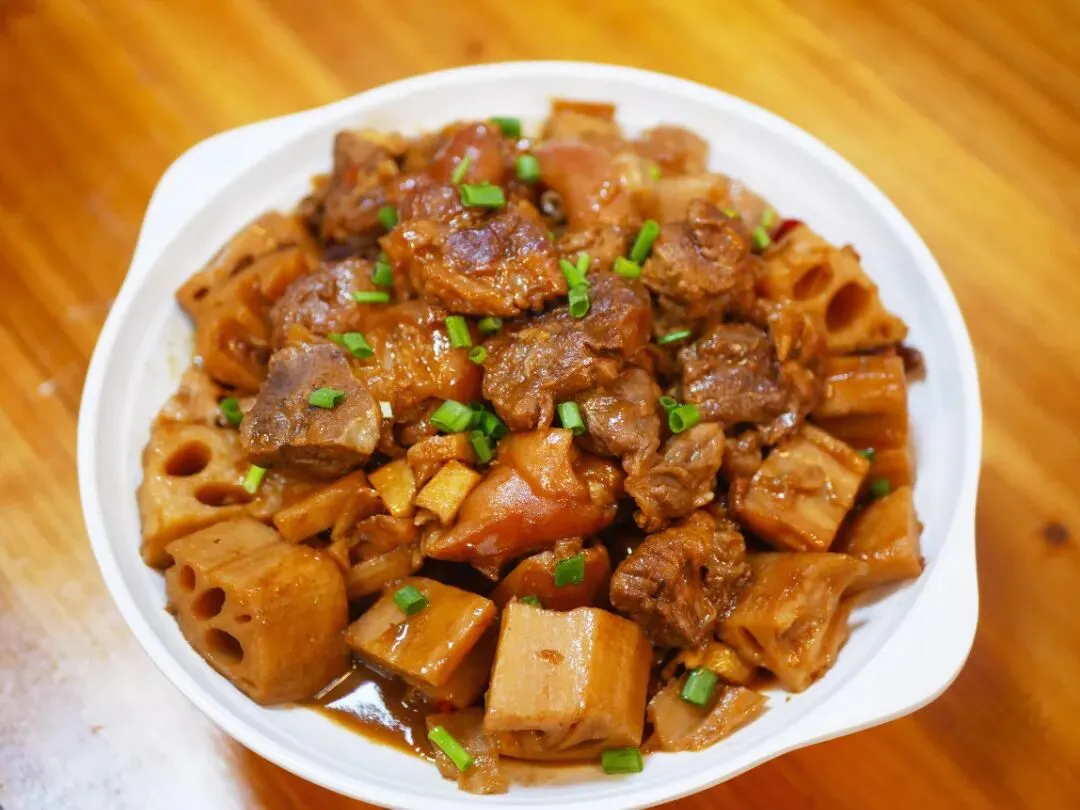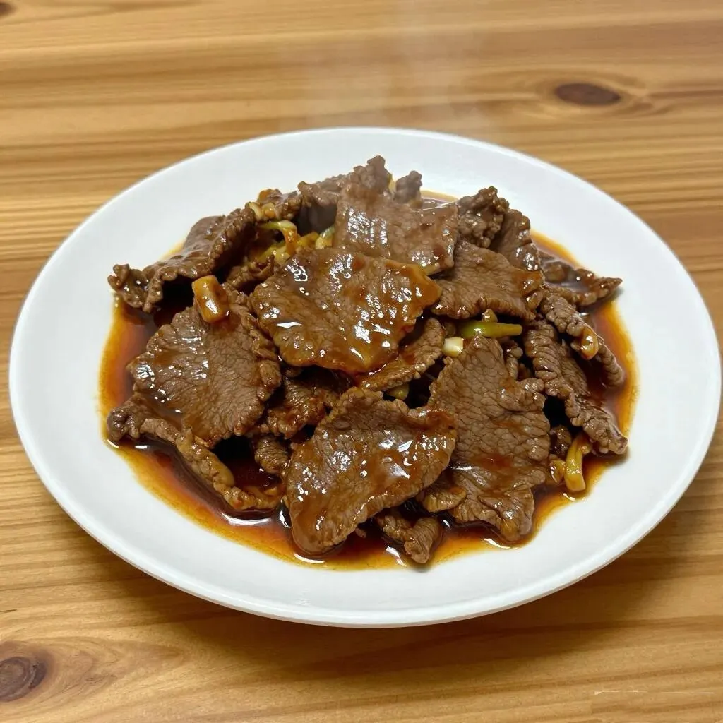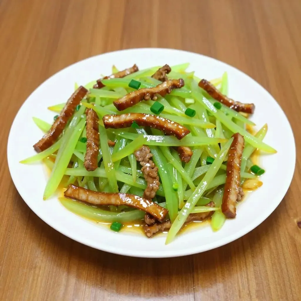 爆炒牛肉、炒三鲜(莴笋、五香酱干、肉丝)