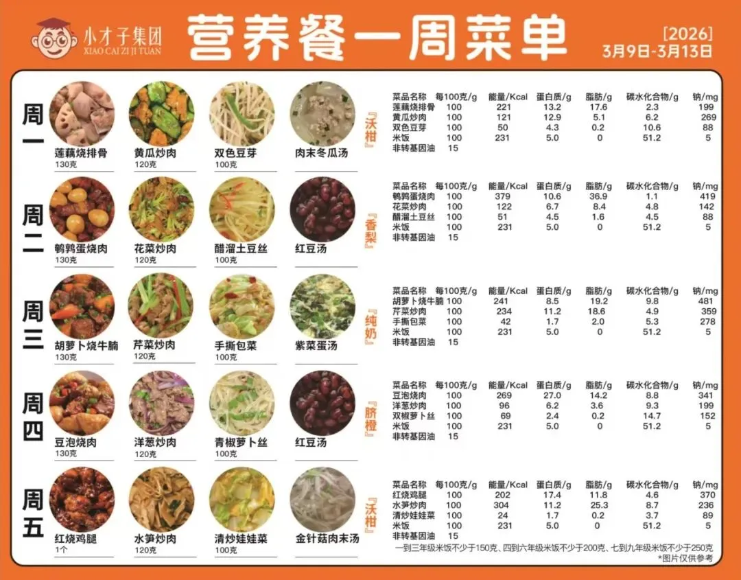 为满足学生成长发育需要,南昌市红谷滩区第一小学食堂遵循“营养、卫生、科学、合理”的工作原则,根据学生成长中的营养需要及饮食口味等,制定营养、美味、健康的学生营养食谱,并严格把控食堂采购、加工、制作的每一个环节,以保证学生营养餐的品质。