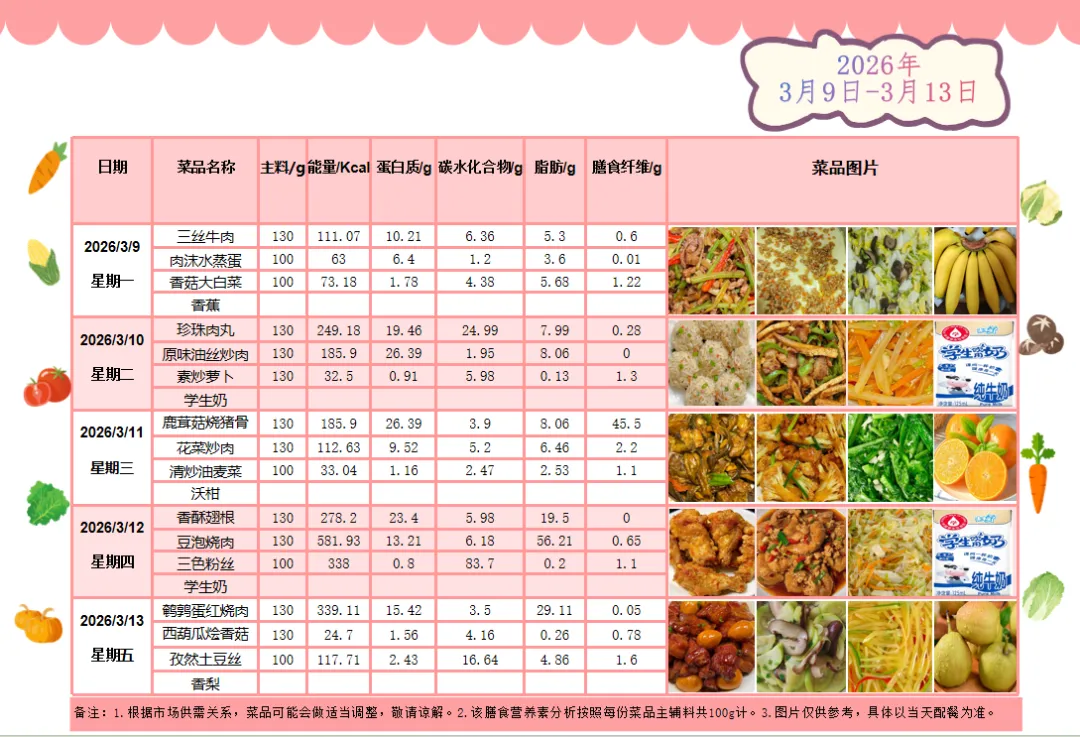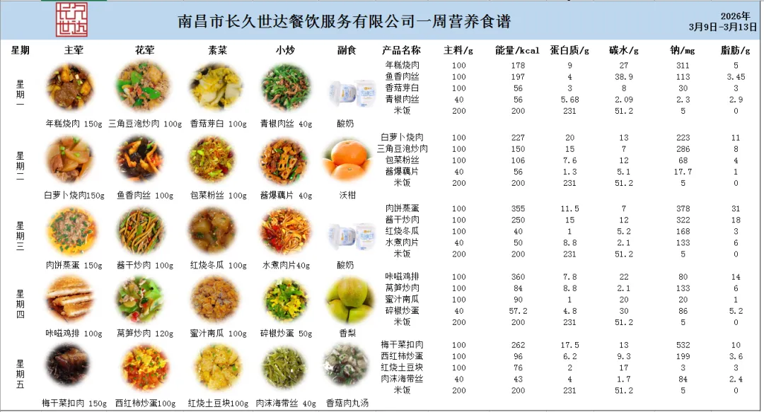 根据《南昌市中小学校(幼儿园)配送餐管理办法》和《南昌市加强校园餐管理措施十条(试行)》文件精神,现将学校2026年3月9日~13日周带量菜谱公示如下。