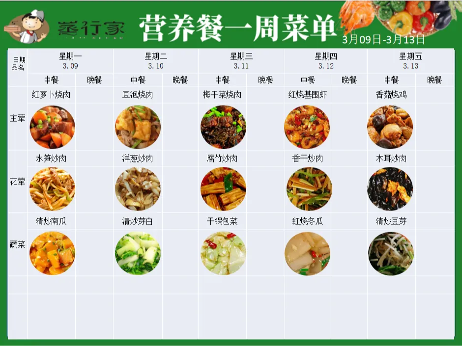 南昌县莲塘第七中学每周菜谱公示(3月9日——3月13日)