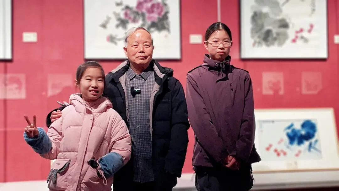 书画瓷三绝艺术大师方国兴先生应邀和小画友合影