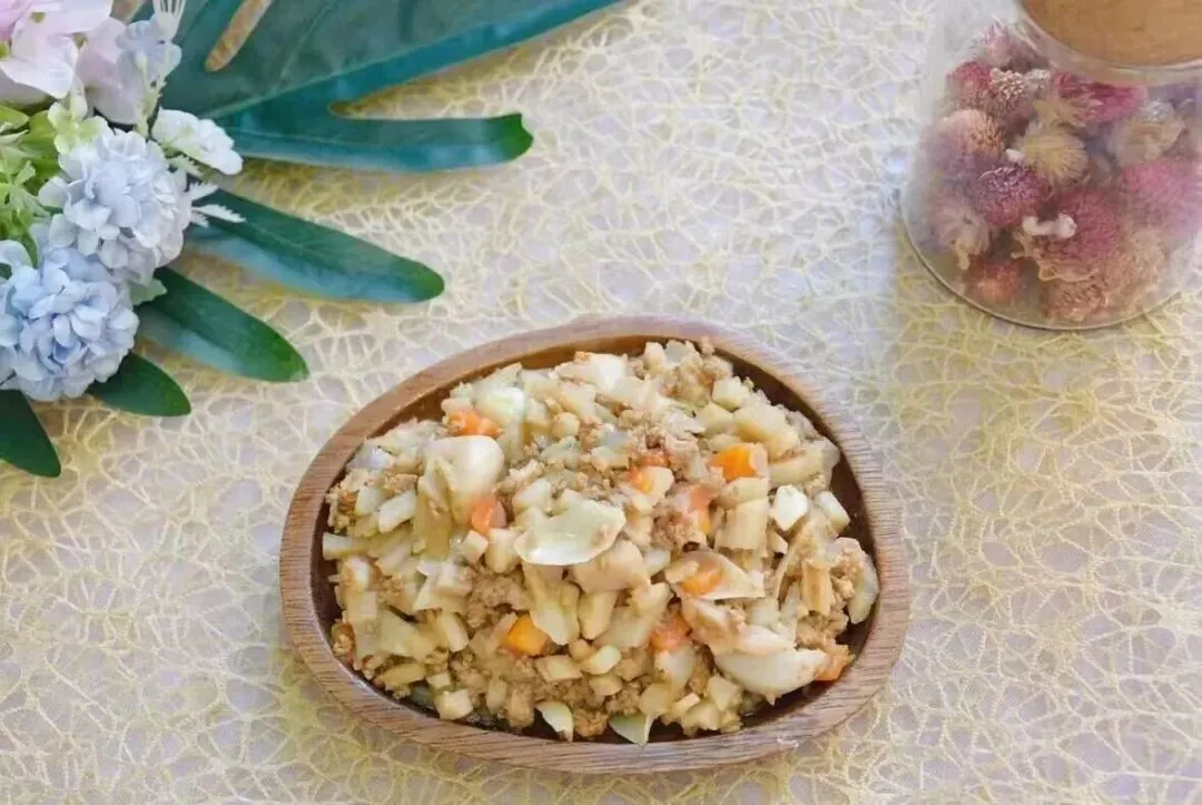 胡萝卜焖牛肉、清炒芽白秧、时蔬肉末蛋花汤、小米(山姆)香米饭