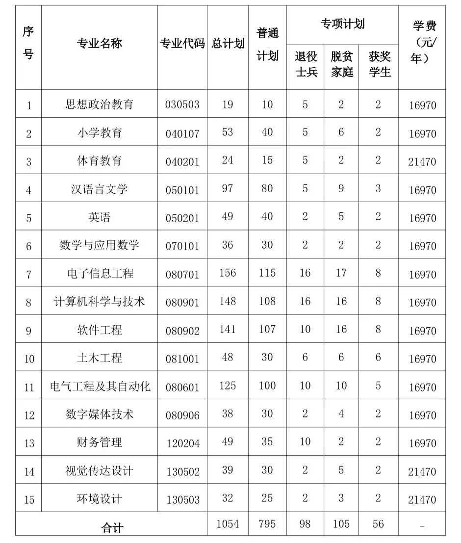 第十七条 学校在专升本招生总规模内,安排“退役大学生士兵专升本专项计划”和“其他专项计划”。如我校某专业专项计划未满额,则将专项缺额计划调整为普通计划进行录取。