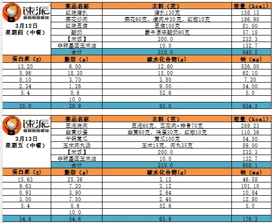 南昌二中九龙湖校区(博雅学校)一周菜谱(3.9—3.13)